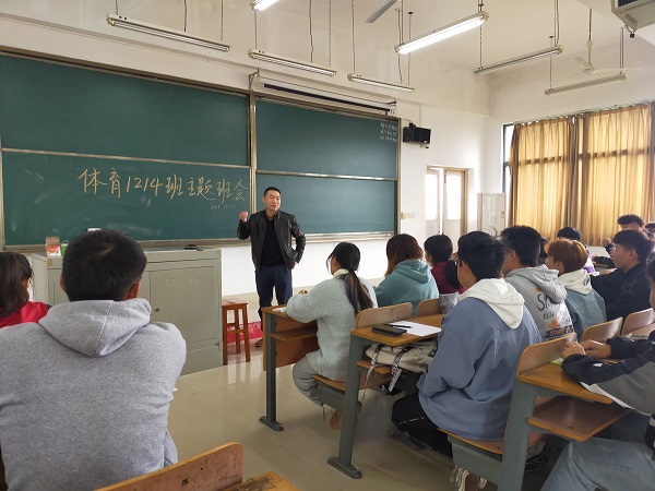 会议伊始,导师班主任黄程副院长做了简单的自我介绍,并且让同学们依次介绍自己。本次班会主要有以下内容:1.身为一个体育人的精神;2.同学们要树立正确的人生观、价值观;3.加强人际交流,要会说、能说、说重点;4.同学们从高中到大学的过渡阶段,如果遇到什么问题可以提出来,寻求老师帮助等方面内容。