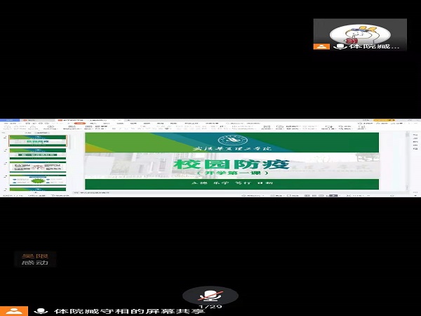 2021年8月29日晚7点,体育学院第一次晚点评在线上召开,此次晚点评由辅导员陈世益、臧守相、李连国主持,体育学院全体同学参加。