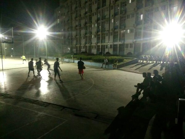 借着路灯和网球场的灯光,大家开始热身运动。小试牛刀后,两队进行了小规模比赛,半场制十个球。比赛一开始,我校队头号射手罗傅文就连得六分,引得场下观众连连叫好,一片赞叹,将气氛推向最高潮。神准的投篮都是平常刻苦训练的成果,校队的队员每天都要完成教练定下的每天投进一百球的任务,为迎战即将到来的CUBA 做准备。教官们也不甘示弱,一次次突破,一次次传球,都体现了身为军人的优秀精神。但无奈一开始落后过多,最后我校队还是以10:2赢得比赛,其中罗傅文一人独得九分,成为当之无愧的MVP。