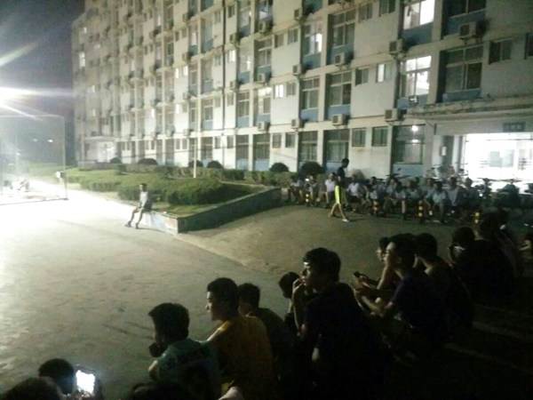 2016年9月23日晚上七点,我校男子篮球代表队与军训教官们切磋球技,引来众多观战团。教官们排着整齐的队列,迈着划一的步伐,自带小板凳排排坐,为队友助阵,可见军纪的严格。许多大一新生,不顾军训的劳累,特地跑来为自己的教官加油,球场气氛绝佳。
