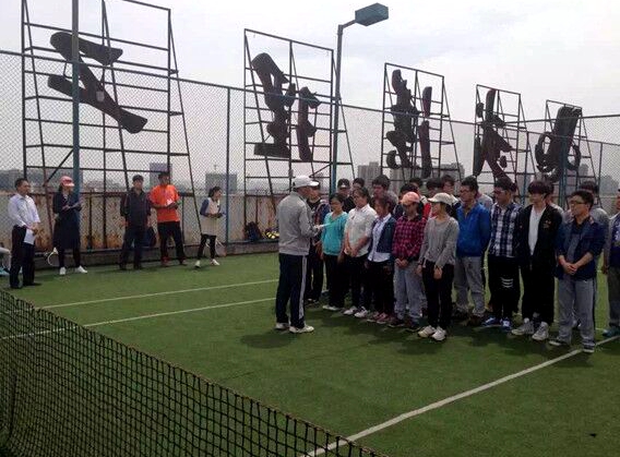 下午第一节课是董老师的网球课,临近考试了,老师和学生们都早早的到达了网球场,做完所有的热身准备活动便投入到复习阶段:网前截击球、发球及正反手击球练习。教学秩序有条不紊,学生的练习和老师的讲解、指导都十分投入,丝毫没有被我们这些“旁观者”影响到。