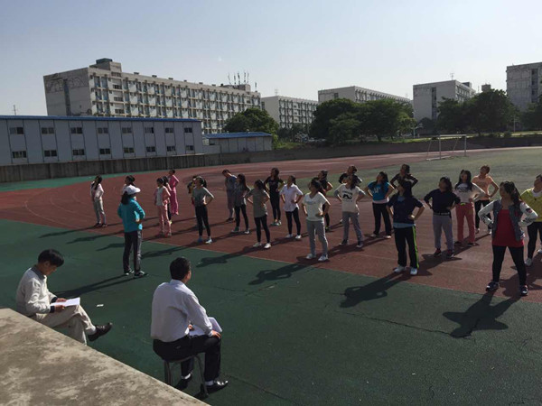之后大家又一起来到田径场听了赵燕老师的有氧舞蹈示范课,有氧舞蹈动感活力,午后的太阳有些火辣,但是老师和学生却踩着音乐的节拍魅力十足!班上唯一的一个男生特别吸引人眼球,不逊色于女生,尤其认真!教学组织得当,井井有条,学生学习兴趣很浓厚,老师们看的也很投入,边看边交流着----