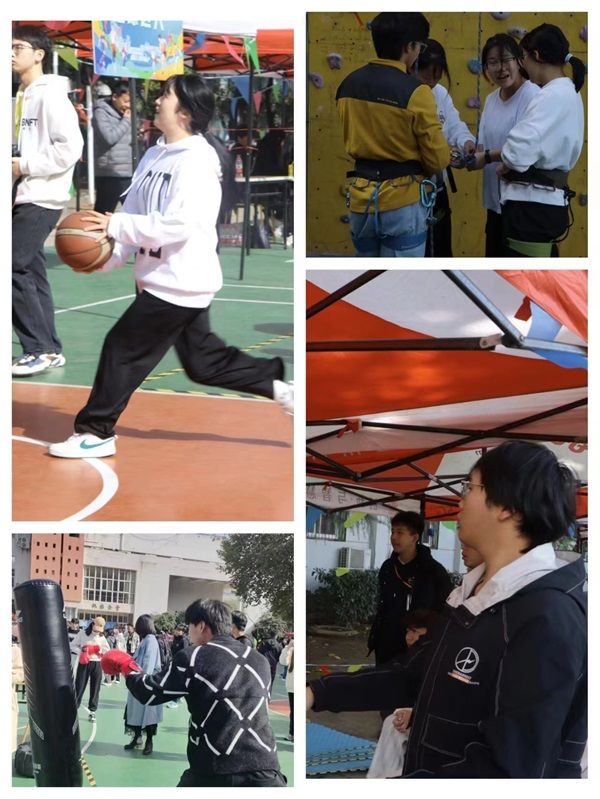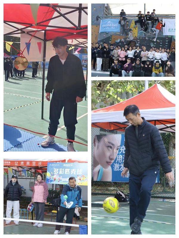 体育嘉年华包含趣味体验类和极限挑战类活动,涵盖十余种项目,包括攀岩、匹克球、拳击、跆拳道、飞盘、飞镖、足球垫球、篮球胯下运球、排球固定垫球等,旨在为我校师生提供开放式活动体验。与以往相比,此次嘉年华的项目更丰富,供师生体验的项目更多。