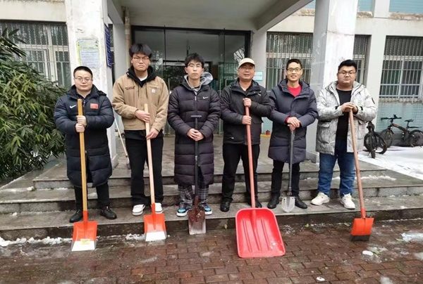 为了保证师生们在校园内的出行安全,下午4点半,学工队伍的老师和同学们一起开始了体育馆和辅导员社区门前的铲雪工作。老师和同学们干劲十足,互相配合,不久便把体育馆和社区门前的积雪清理干净了。