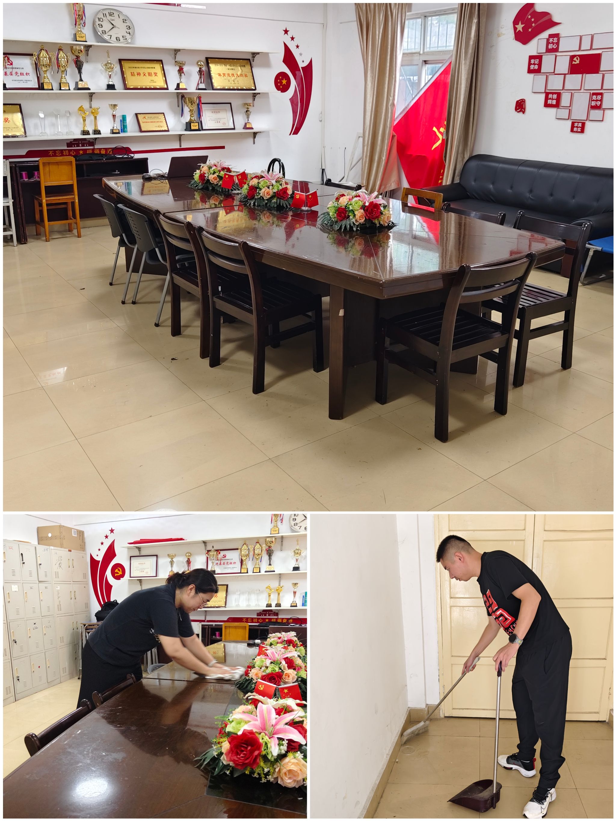 会议结束后,全体青年教师进行集体大扫除,整个办公室在大家的共同努力下打扫的干干净净,以崭新的面貌迎接新学期的到来。