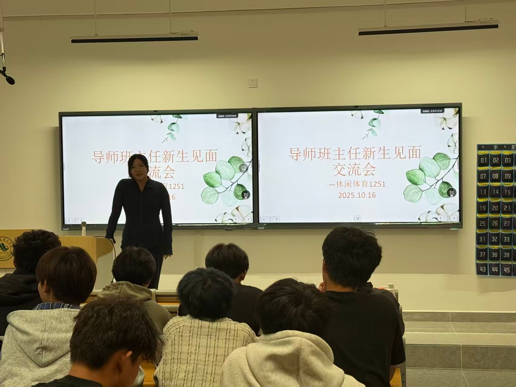 10月16日下午4:50,休闲体育1251班全体同学齐聚教学楼C305教室,一场兼具温度与方向感的导师班主任见面会在此拉开帷幕。本次会议由学长班主任张久念主持,导师班主任李欣阳担任主讲人,为帮助大一新生尽快完成从高中到大学的角色转变,明确学习方向,搭建起与师长沟通的桥梁。