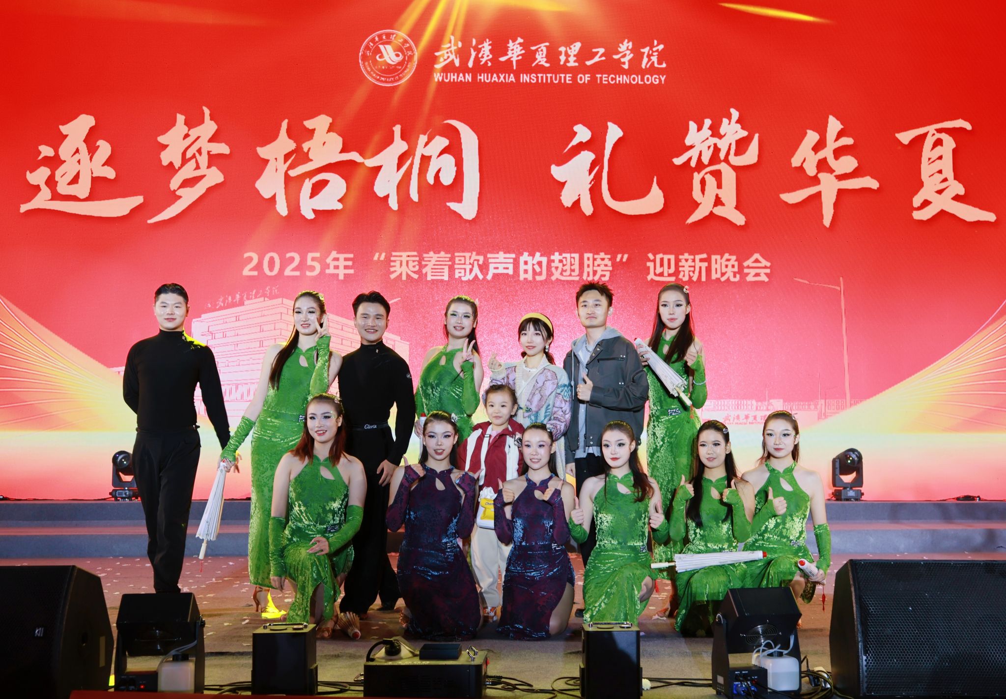 10月26日晚18:30,武汉华夏理工学院梧桐湖校区灯光交织,2025年“乘着歌声的翅膀”迎新晚会如期启幕。师生齐聚一堂,校体育舞蹈队参演节目《青子吟》凭借古典与拉丁舞的热烈碰撞,成为晚会高光时刻,斩获全场一致好评。