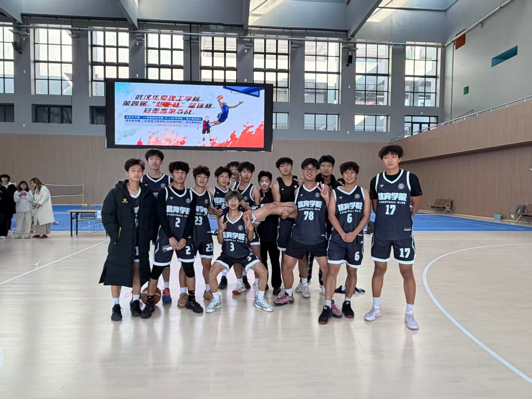 2025年11月20日中午,武汉华夏理工学院梁子湖校区体育馆内人声鼎沸,篮球新生杯决赛在此上演终极对决。本届赛事,体育学院篮球队一路过关斩将,展现出强劲实力,最终在巅峰之战中力克智能制造学院,成功加冕冠军,展现了无愧于学院之名的竞技风采。