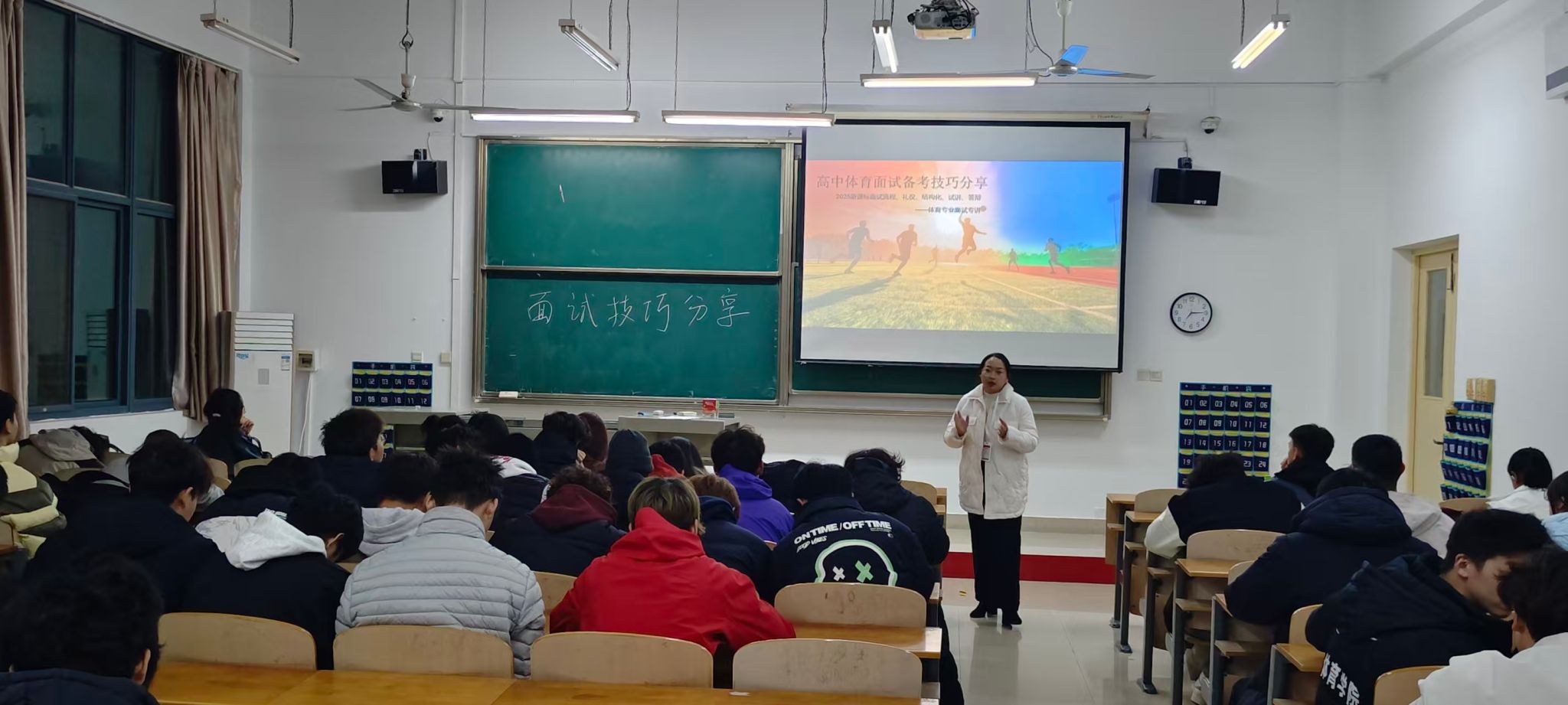 为助力体育学院学子高效备战教师资格证面试,11月23日晚7点,武汉华夏理工学院体育学院于光谷校区2-409教室举办教师资格证面试技巧指导讲座,特邀金奕菡、付雪两位资深教资讲师担任主讲,学院众多备考学生参与了本次活动。