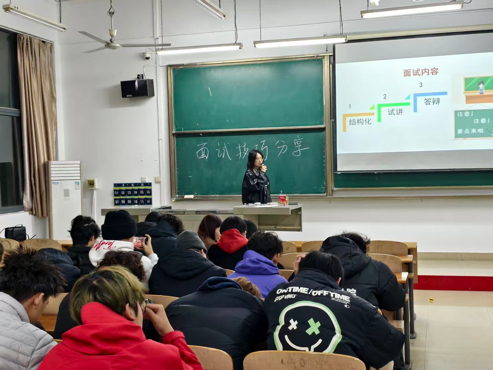讲座中,两位老师围绕面试流程、试讲技巧、结构化问答等内容进行了细致讲解,既分享了“短时间设计优质教案”“面试礼仪细节”等实用方法,也结合真实案例拆解了常见失分点,现场互动频繁,学生们纷纷表示收获颇丰。