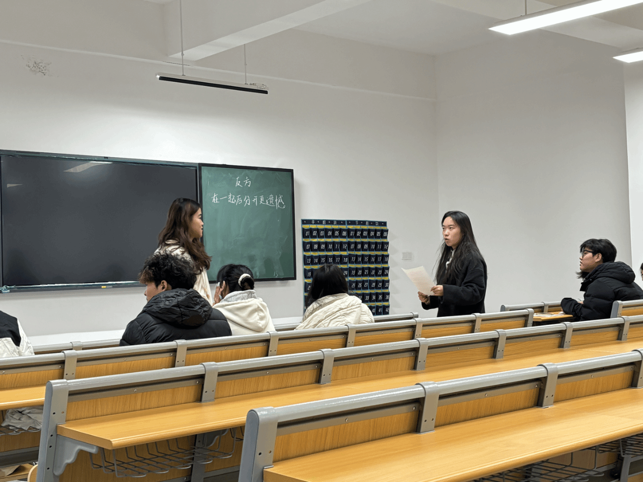 为了丰富自己的校园生活,提高自己的表达能力,锻炼自己的逻辑思维能力,11月27日,体育学院学子自发组织了一场围绕“从未在一起更遗憾”与“在一起又分开更遗憾”的辩论赛,体育学院赵立燃、王玳宸、张悦三位评委坐镇点评,辩论过程中选手们以深刻论点与精彩交锋展现思辨魅力。
