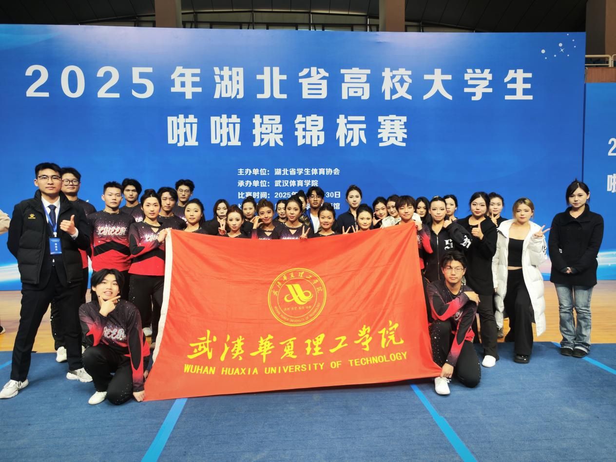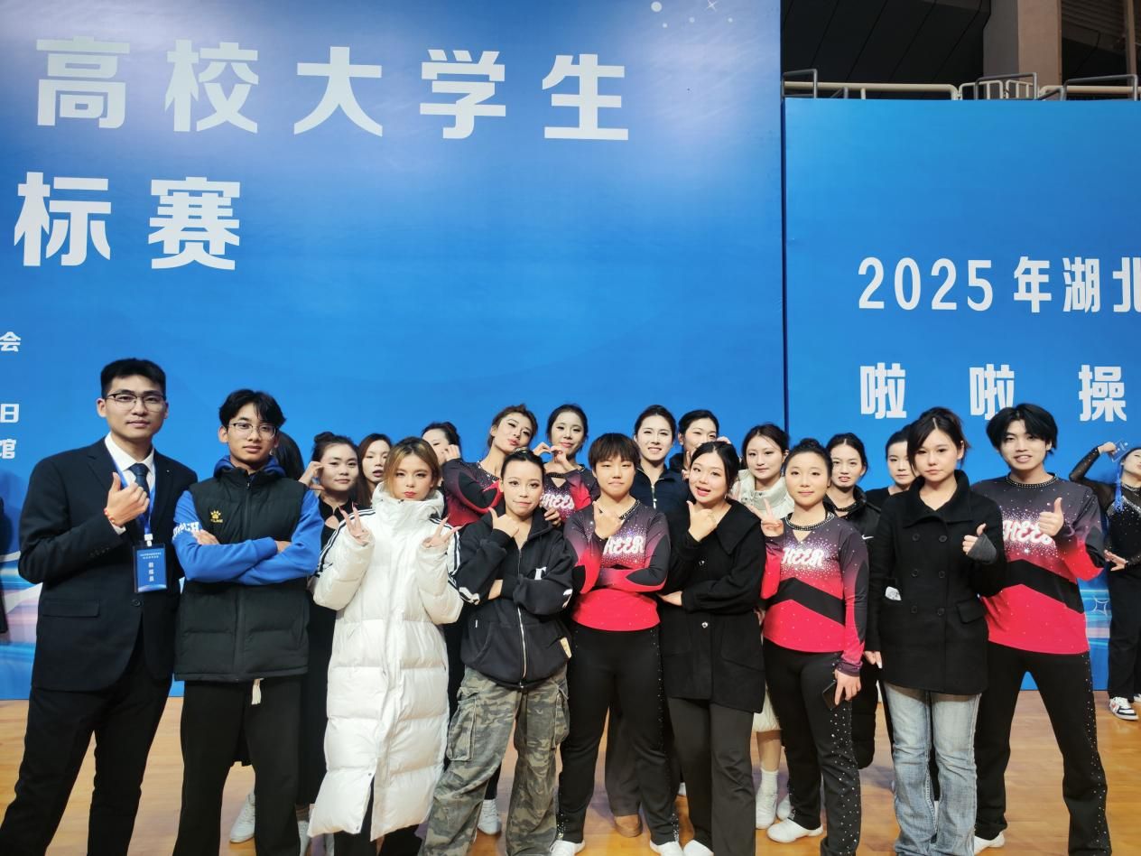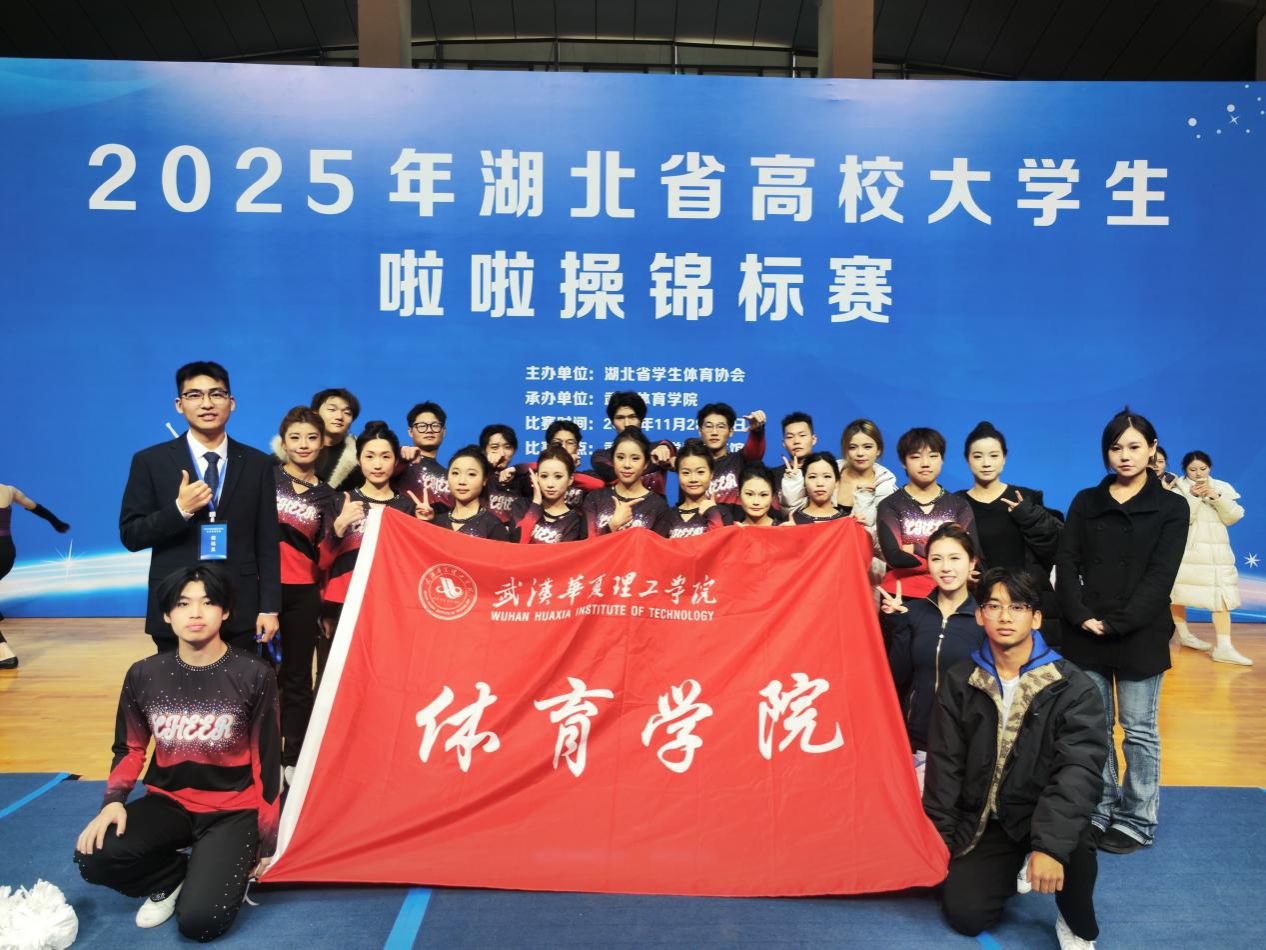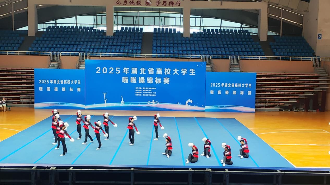 11月29日,2025年湖北省高校大学生啦啦操锦标赛在武汉体育学院体育馆激烈开赛。本次比赛由体育学院副院长赵燕领队,休闲体育系教师张曦晨为教练员,休闲体育系教师黎明作为随队裁判展现了专业能力水平。武汉华夏理工学院校健美操队在当日赛事中表现亮眼,一举拿下自由舞蹈项目第二名、啦啦操初级B组第三名、啦啦操超级A组第二名荣誉,用活力与默契展现了高校学子的青春风采。