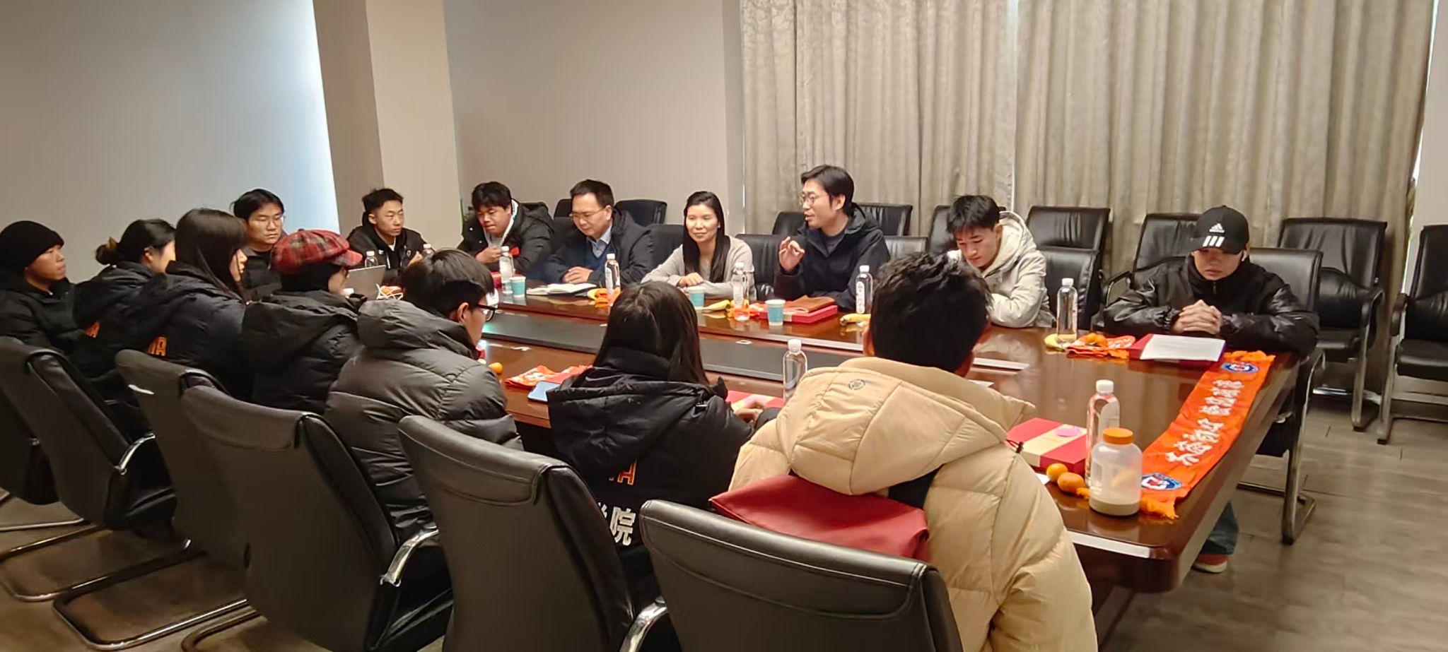 随后学院领导们将一份份精心准备的慰问礼品送到学生手中,包括备考文具、暖冬用品及营养食品等,实用又暖心的礼物让同学们倍感温暖。现场互动轻松热烈,老师们亲切询问同学们的复习进展与生活情况,并针对具体问题给予了细致解答。