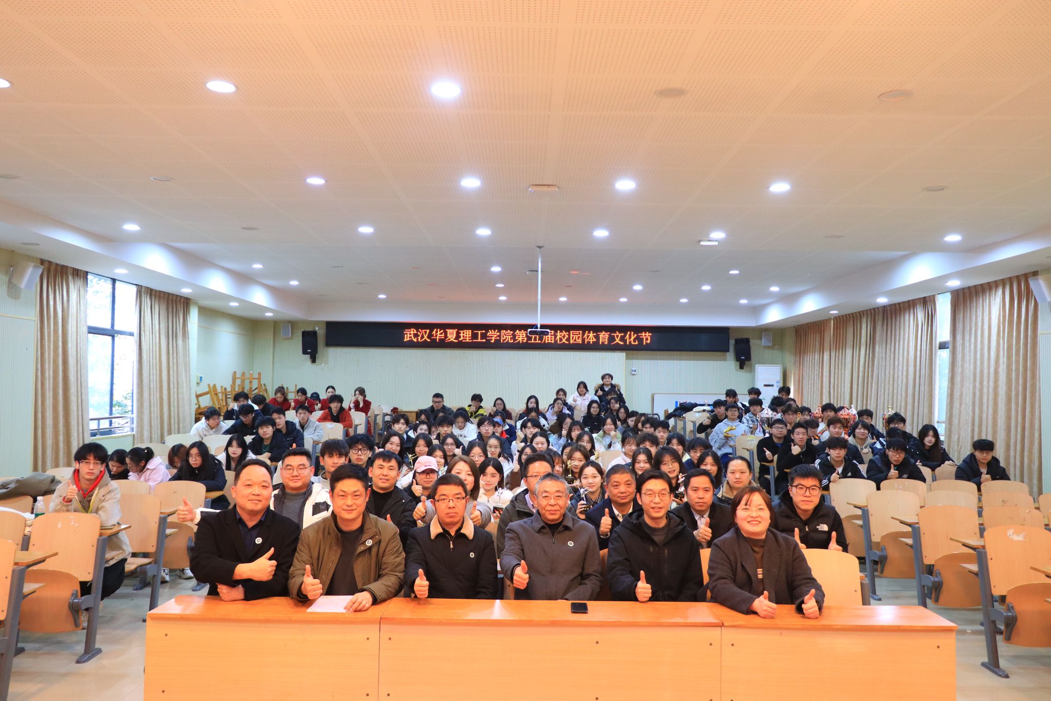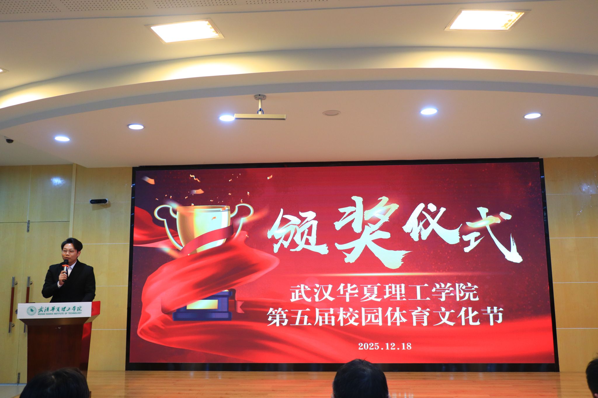 12月18日下午2点30分,武汉华夏理工学院第五届校园体育文化节闭幕式暨颁奖典礼在二教201教室举行。党委副书记、副校长李海民,党委学工部部长陈伟,校团委书记潘晶,各学院党委副书记、体育委员会相关人员及学生代表参会,校团委宣传部部长陈军主持活动。