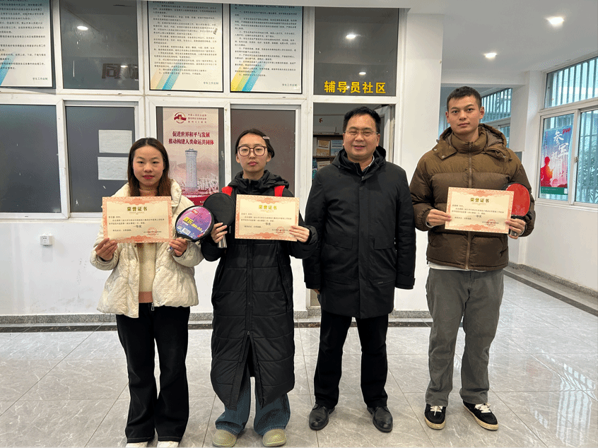 2025年12月24日中午12点10分,武汉华夏理工学院体育学院职业规划大赛院内选拔赛颁奖仪式在辅导员社区顺利举行。学工办主任陈世益,辅导员李连国、叶航出席仪式,为大赛获奖学子颁发荣誉证书与奖品。