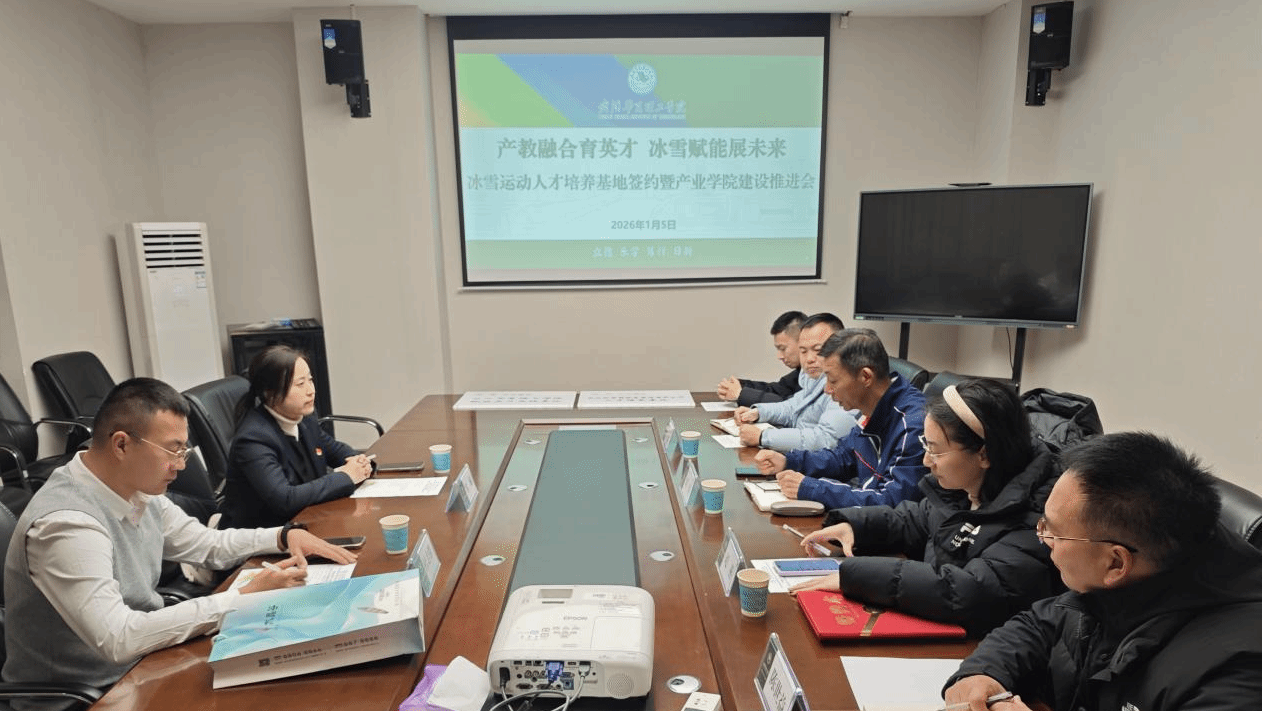 为深化产教融合、推动冰雪运动特色人才培养,2026年1月5日下午,我校体育学院与武汉际华园投资建设有限公司在体育馆二楼会议室举行“冰雪运动人才培养基地签约暨产业学院建设推进会”。武汉际华园投资建设有限公司隶属于中央企业——新兴际华集团,是国内冰雪产业与体育综合体开发运营的重要力量。旗下咸宁际华园水晶谷度假区已发展成为华中地区知名的冰雪运动与休闲度假目的地,在冰雪场馆运营、体育文旅融合等方面积累了丰富经验和行业影响力。