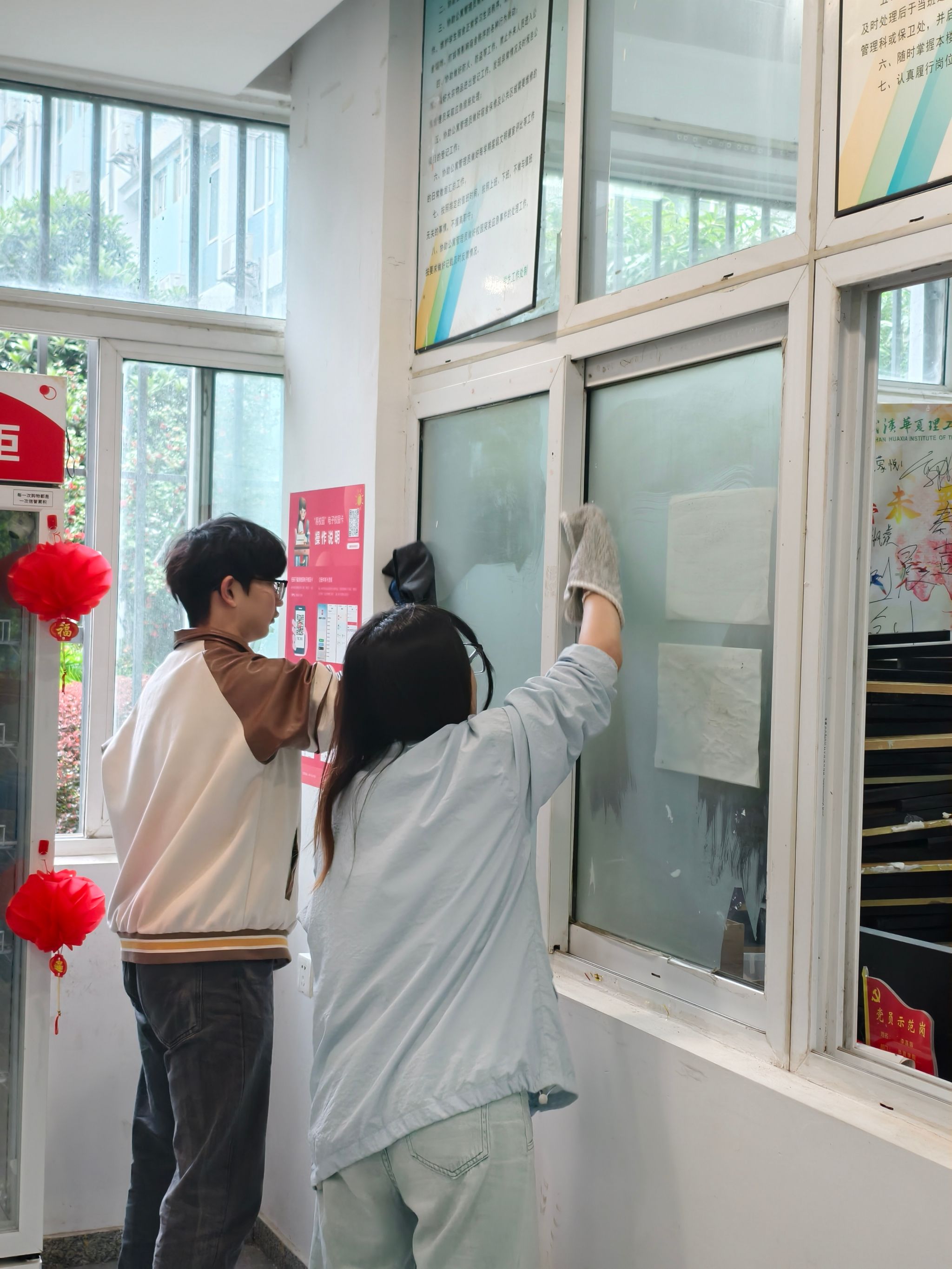 辅导员社区是师生沟通、学院办公、活动开展的核心阵地,长期使用后易出现杂物堆积、卫生死角等问题。活动前期,志愿者们提前与辅导员沟通时间,明确清洁区域与整理规范,备好各类清洁与整理物资。活动中,志愿者们分工协作,分为清洁、整理、消杀三个小组,有条不紊地清扫地面、擦拭门窗桌椅,规范摆放公共设施与物品,细致清理卫生死角,同时对高频接触区域进行全面消毒,全程严格遵守纪律,不随意翻动文件,用心维护社区环境。