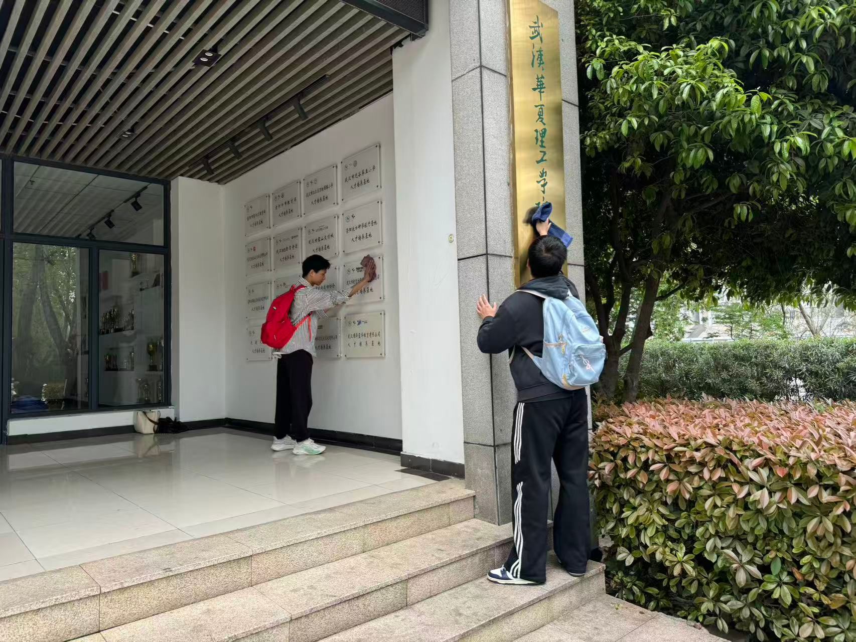 清扫过程中,志愿者们分工协作、干劲十足,手持扫帚、簸箕、垃圾夹等工具,重点清理体育馆外围广场、绿化带及墙角死角的纸屑、塑料瓶与落叶,对出入口通道、栏杆及公告栏进行细致擦拭。大家不怕脏、不怕累,认真清理每一处卫生死角,将垃圾分类投放至指定垃圾桶。各小组完成清扫后,开展自查与互查,确保环境整治不留盲区。