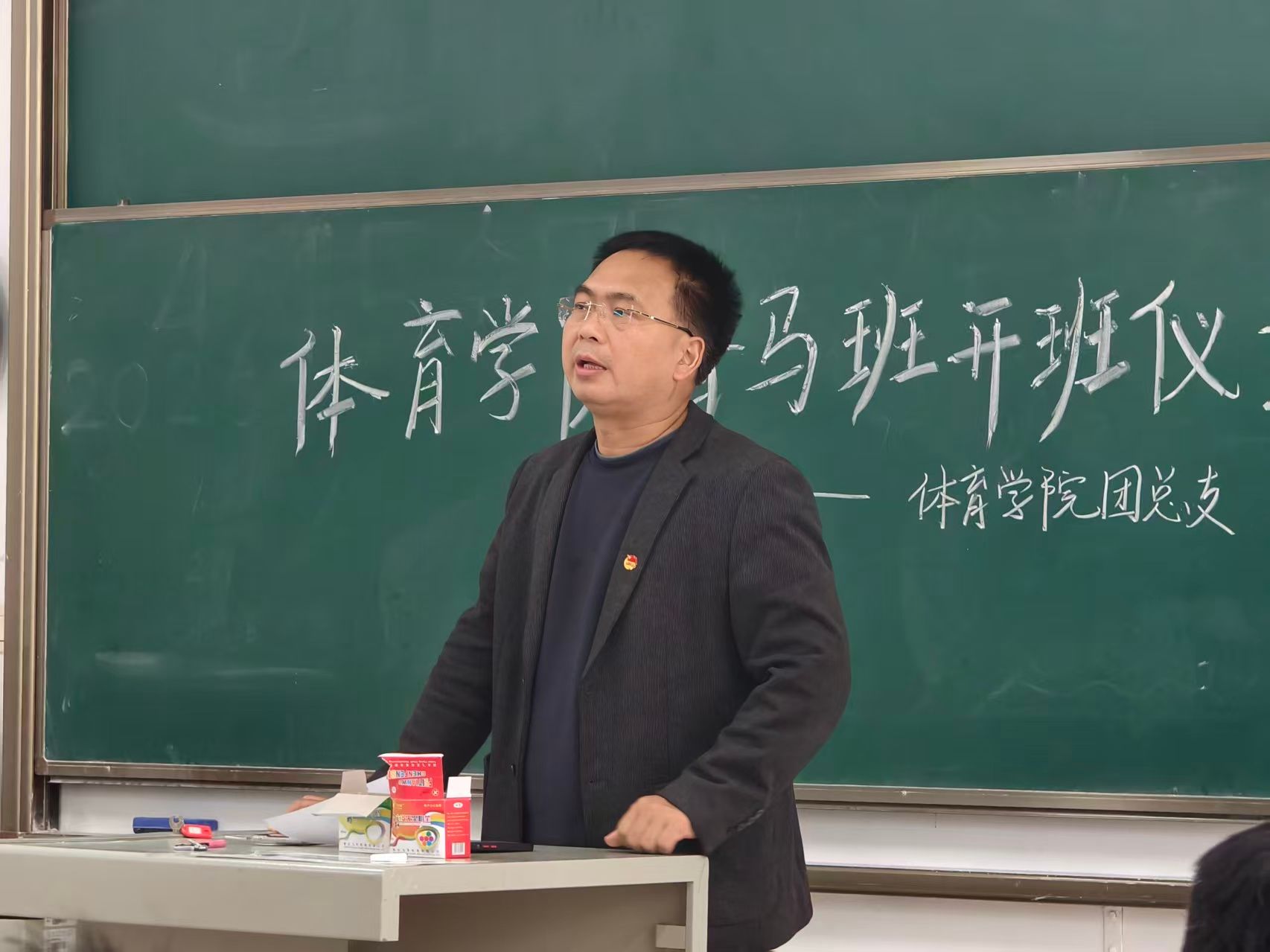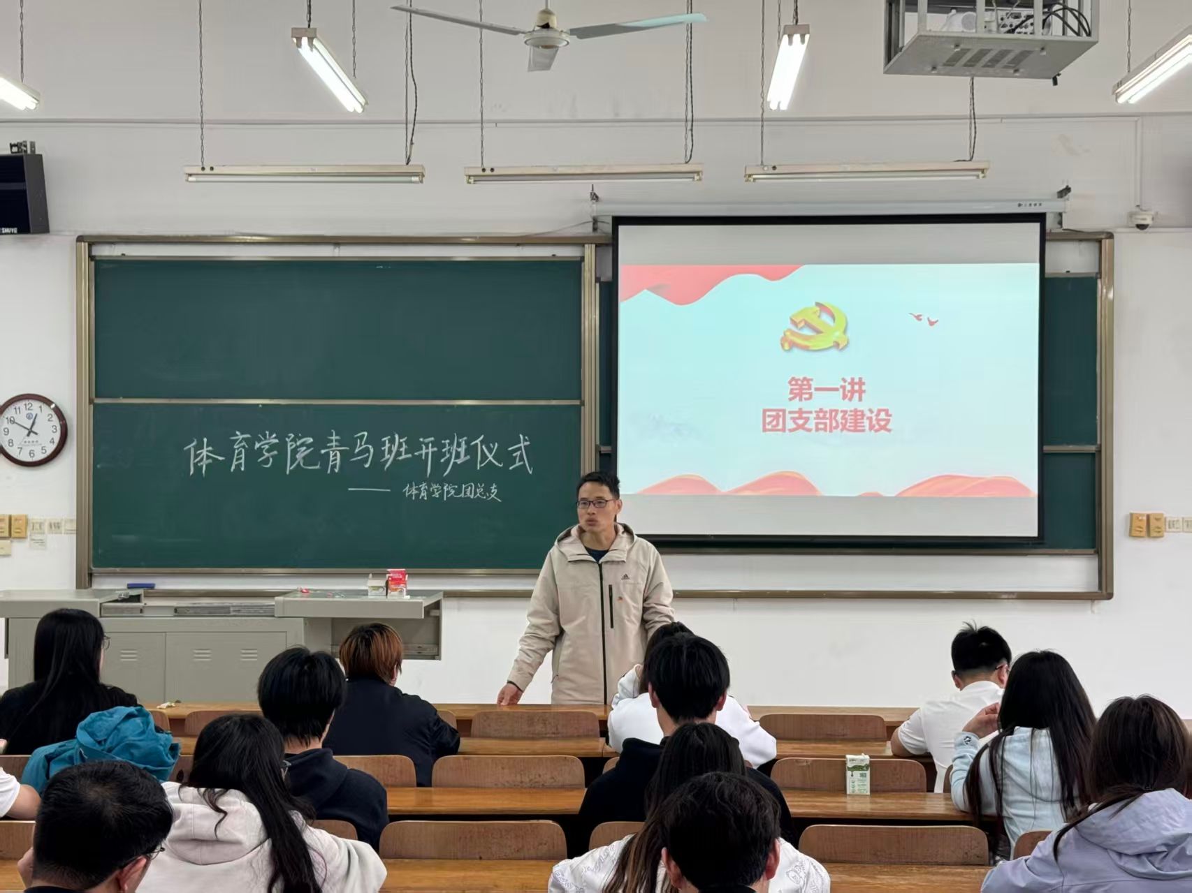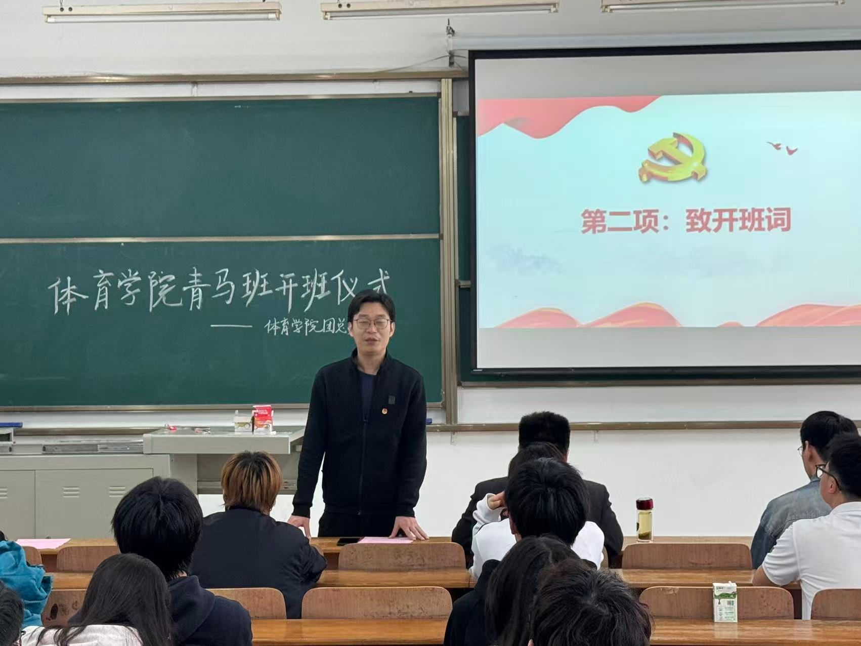 为深入学习贯彻习近平新时代中国特色社会主义思想,培育高素质青年政治骨干和学生骨干,2026年4月16日中午12点30分,武汉华夏理工学院体育学院青年马克思主义者培养工程培训班开班仪式在一号教学楼101教室顺利举行。体育学院党总支书记毛峥毅,学工办主任陈世益,团总支书记李连国,团总支副书记王明权出席本次仪式,全体青马班学员共同参与。