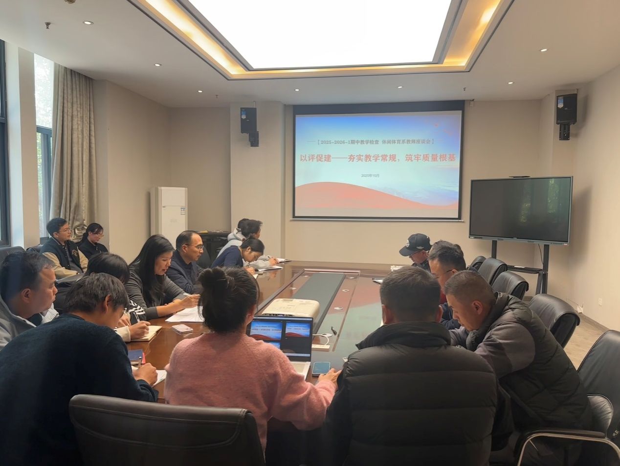 为进一步规范教学管理,深化教学改革,休闲体育系于2025年10月28日中午组织召开了期中教学检查教师座谈会。会议以“以评促建——夯实教学常规,筑牢质量根基”为主题,旨在通过教学检查与反馈优化教学过程,提升教学质量。