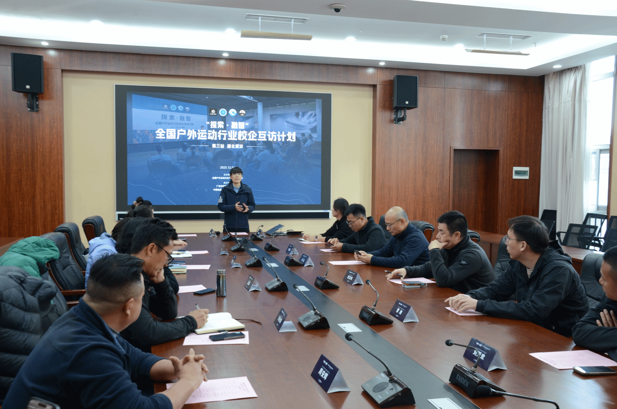 为深化户外运动领域校企协同育人,加强行业资源整合与人才培养经验交流,2025年12月6日,由全国户外运动行业产教融合共同体主办的“探索・融智”全国户外运动行业校企互访计划(武汉站)会议在中国地质大学(武汉)顺利召开。武汉华夏理工学院体育学院积极参与,休闲体育系主任甘文韬、专任教师王琦薇共同参会,与政府代表、高校同仁及企业嘉宾齐聚一堂,共探户外运动人才培养与行业发展新方向。