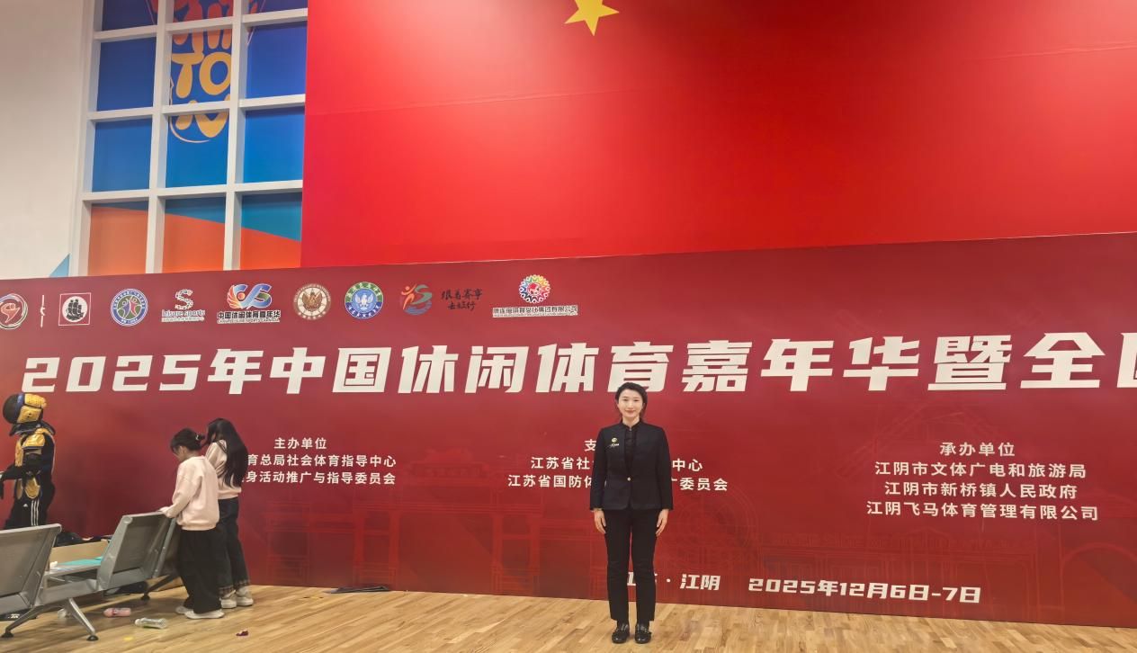 2025年12月6-7日,“2025年中国休闲体育嘉年华暨全国国防体育运动大联动总决赛”在江苏省江阴市飞马体育公园举办。我院体育教育系主任宁梦茹加入裁判阵容,出任“短兵对抗”项目裁判员,同时开展体育项目及赛事调研工作。