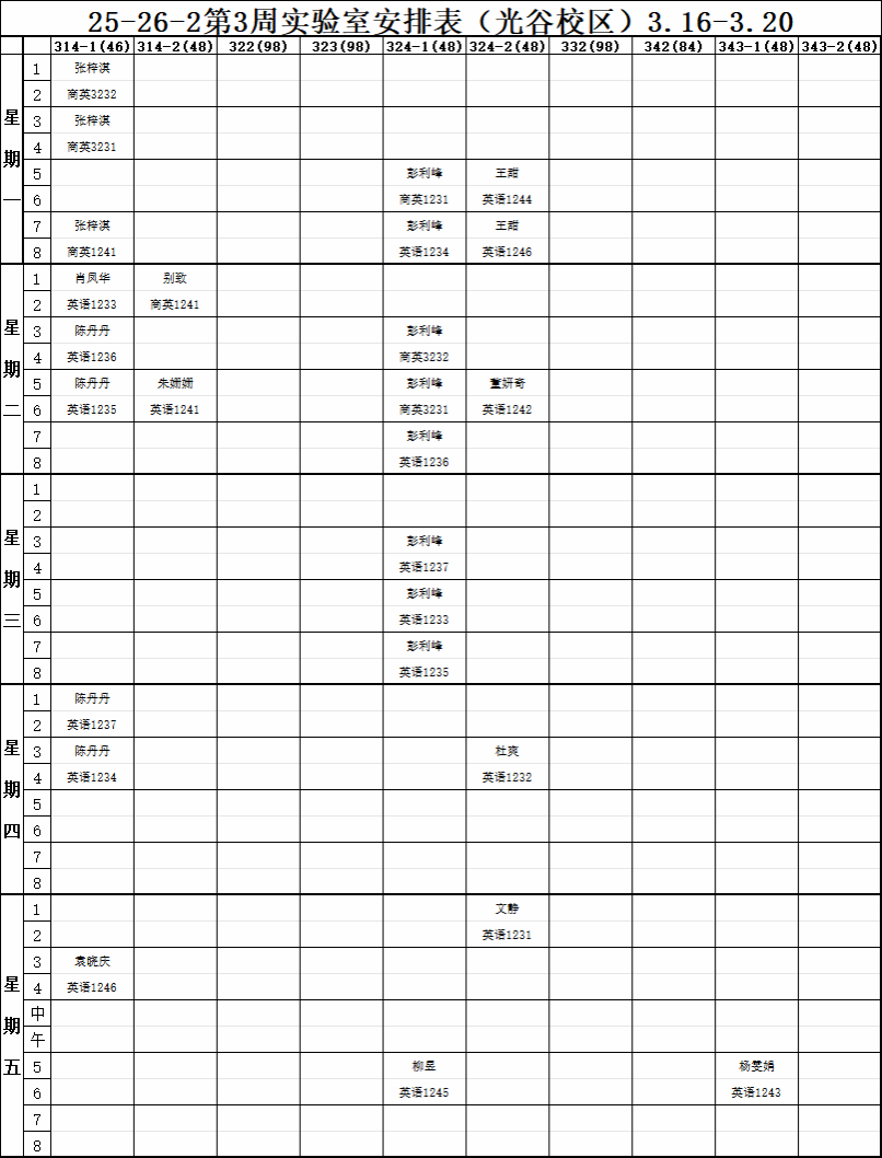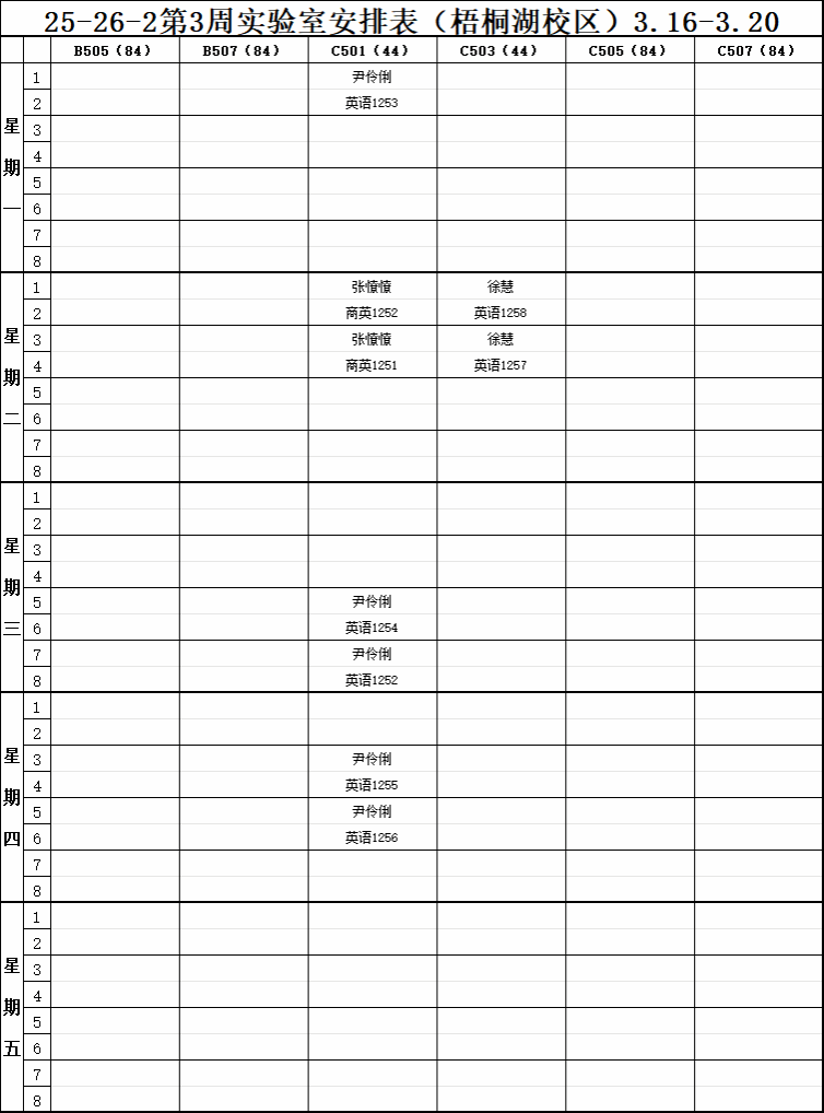 【实验教学】2025-2026-2学期第3周实验室安排表