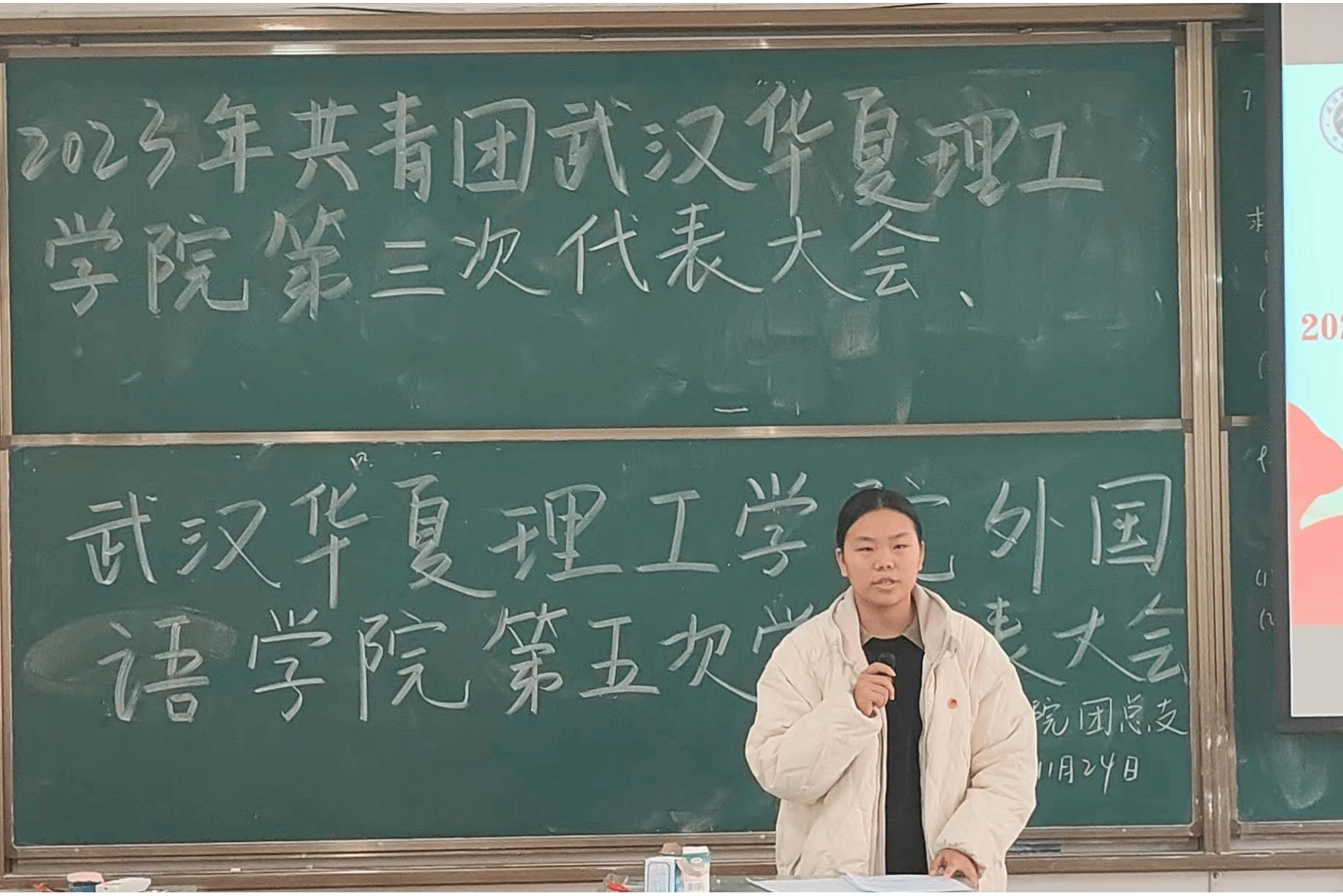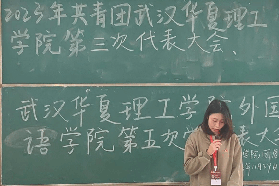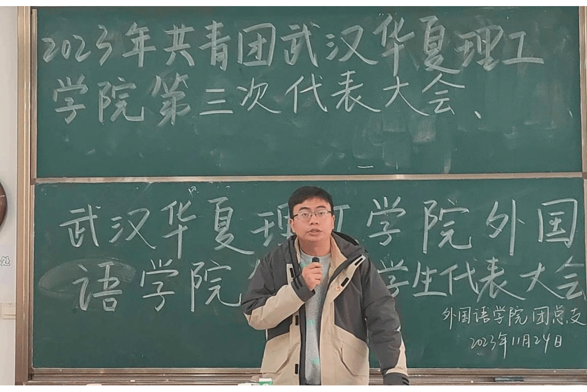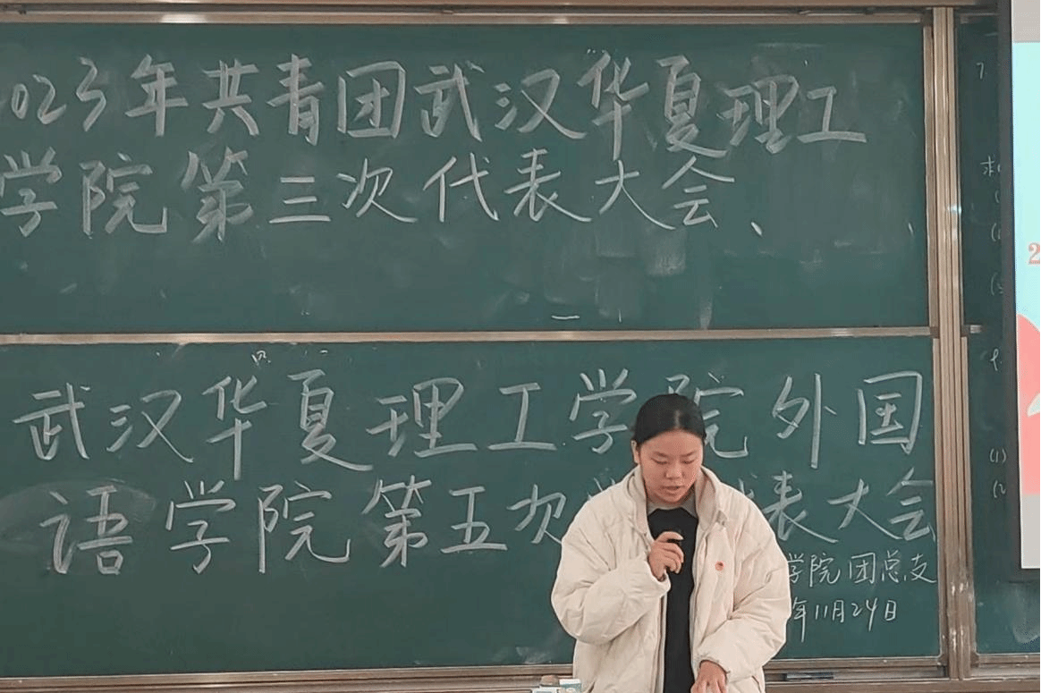 根据共青团实际发展的需求,共青团武汉华夏理工学院外国语学院第三次代表大会、武汉华夏理工学院外国语学院第五次学生代表大会于11月24日12:50在教学楼1-101召开。本次会议由团代会负责人张连主持。出席本次会议的成员有外国语学院学工办主任、团总支书记杨洋老师,团总支副书记贾佳老师、杨森老师,2023年外国语学院各年级团代会代表候选人预备人及2023年外国语学院各年级学代会代表候选人预备人。