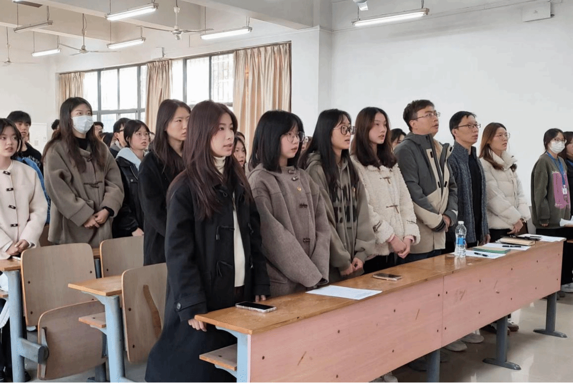 首先,全体起立,奏唱国歌和团歌。