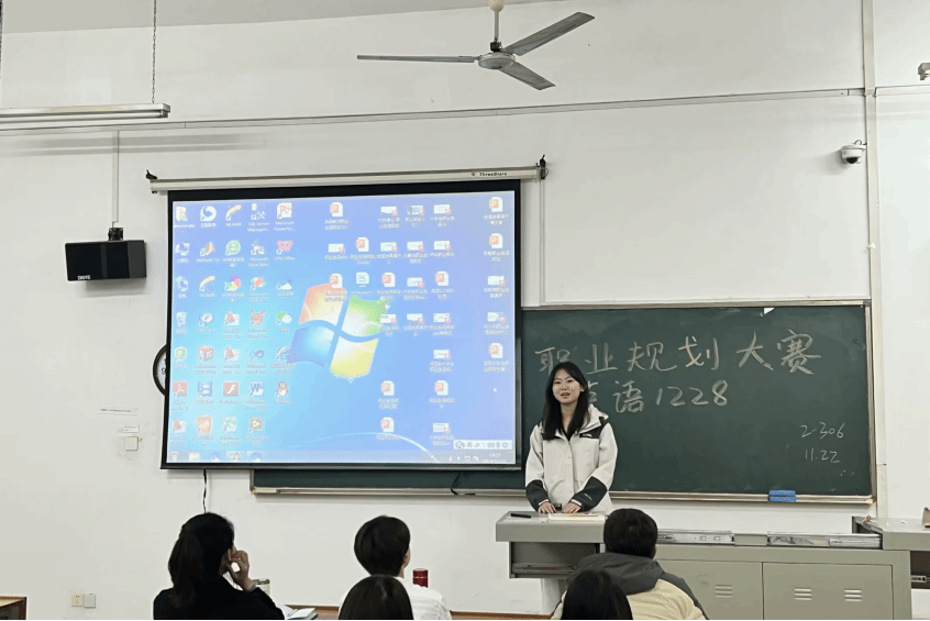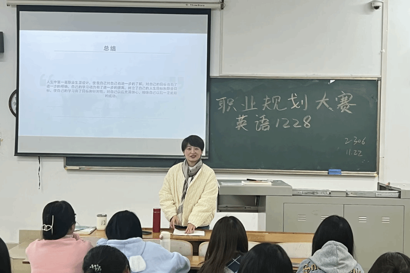 为帮助同学们更好地了解并规划自己的职业发展,提升职业素养,英语1228班于11月22日顺利开展“职业规划大赛”主题班会。会议由班级委员主持,出席此次班会的有外国语学院学工办主任、团总支书记杨洋老师,22级辅导员郭晨艳,英语1228班导师班主任王丽丽老师及全体成员。