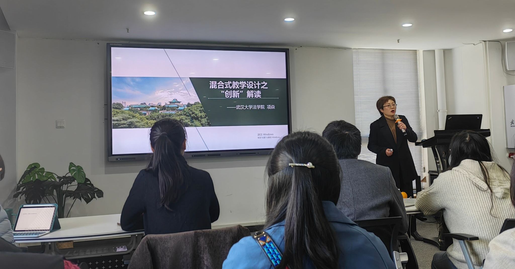12月6日下午2:30,大英部多名教师前往综合楼1401教师发展中心会议室,参加由武汉大学法学院博士生导师项焱教授带来的“混合式教学设计之创新解读”讲座。