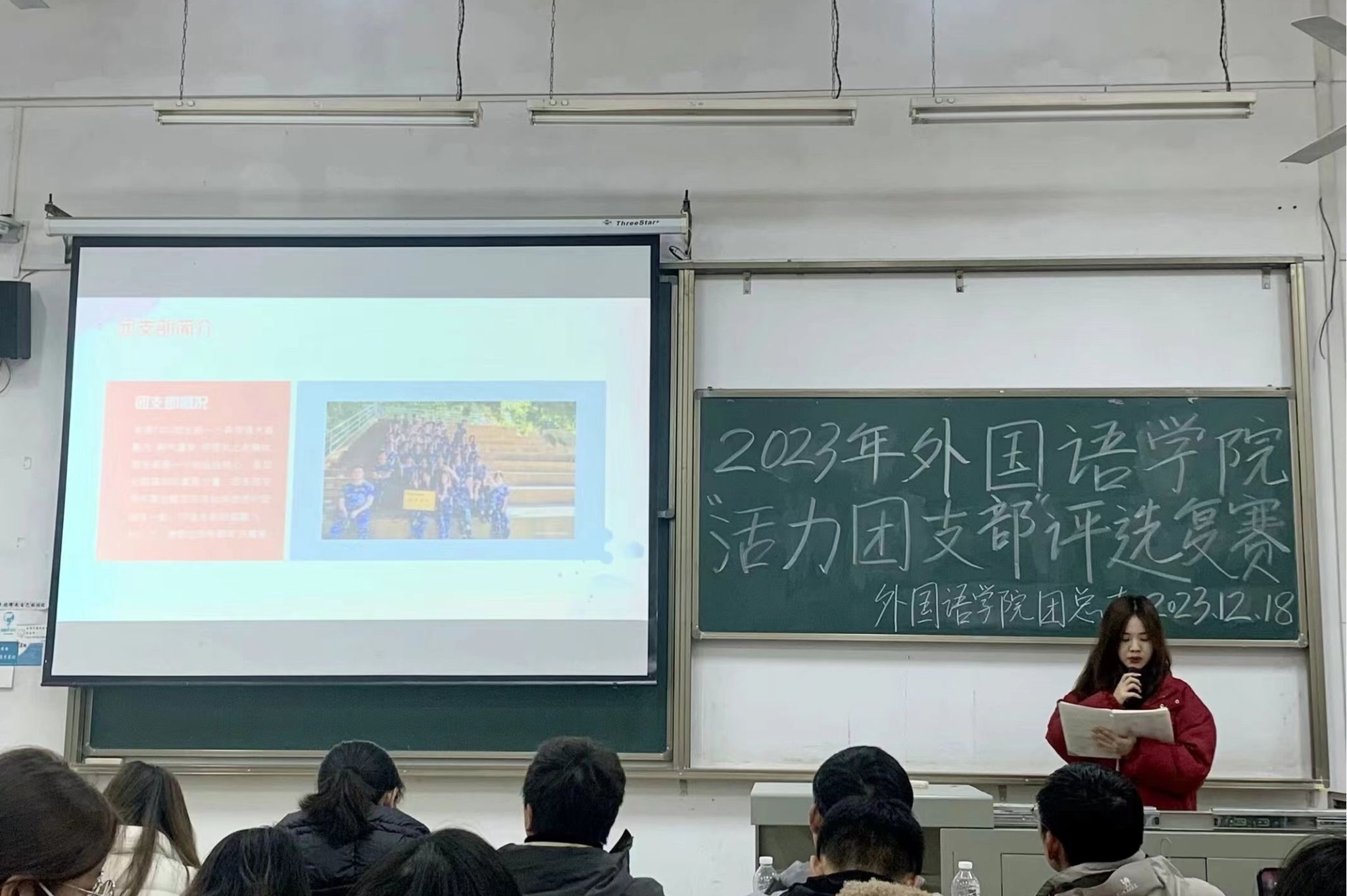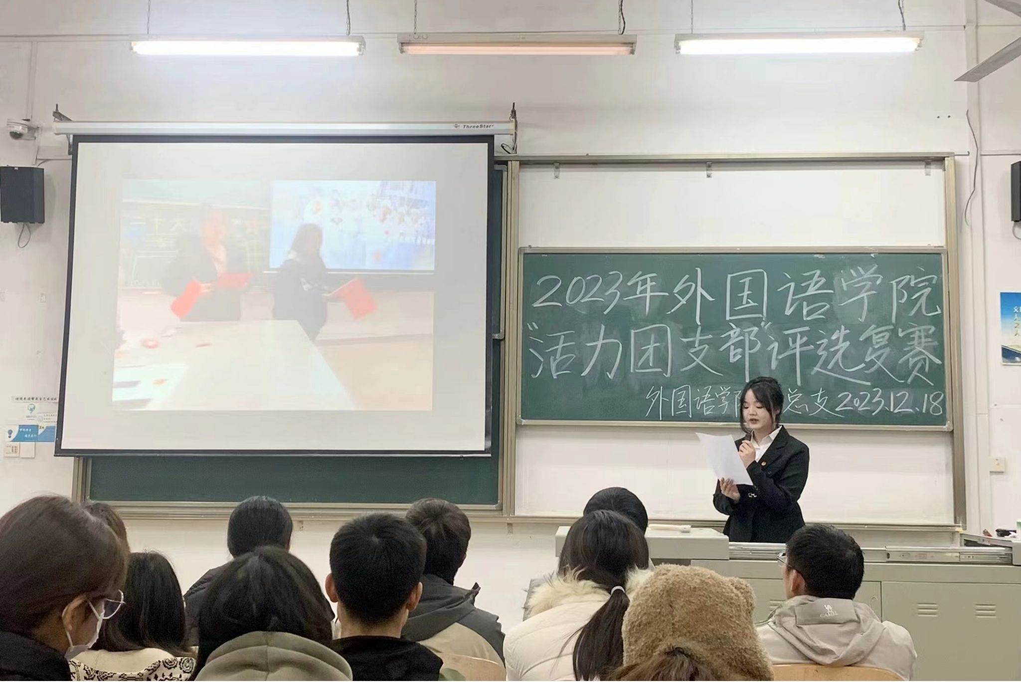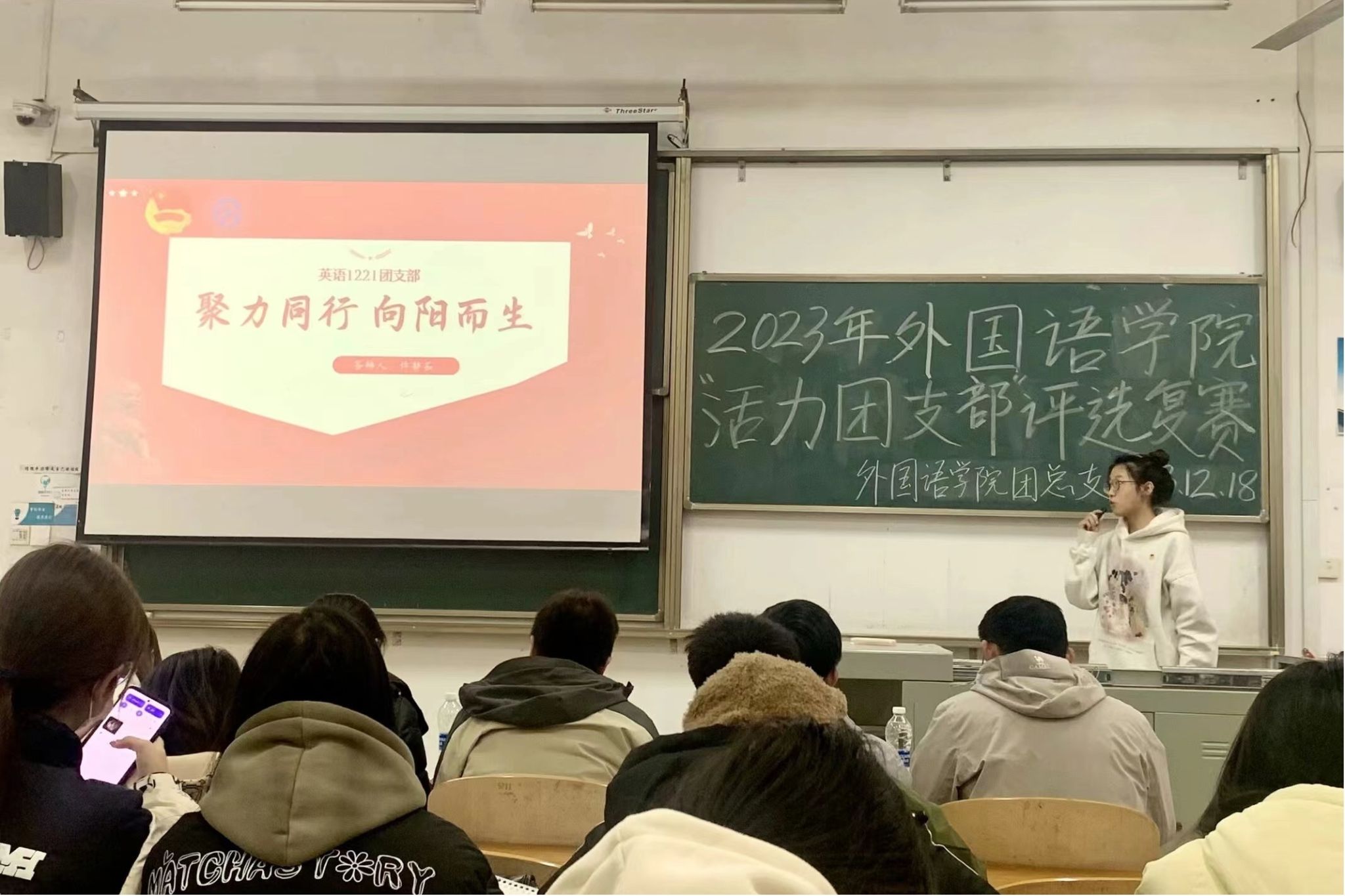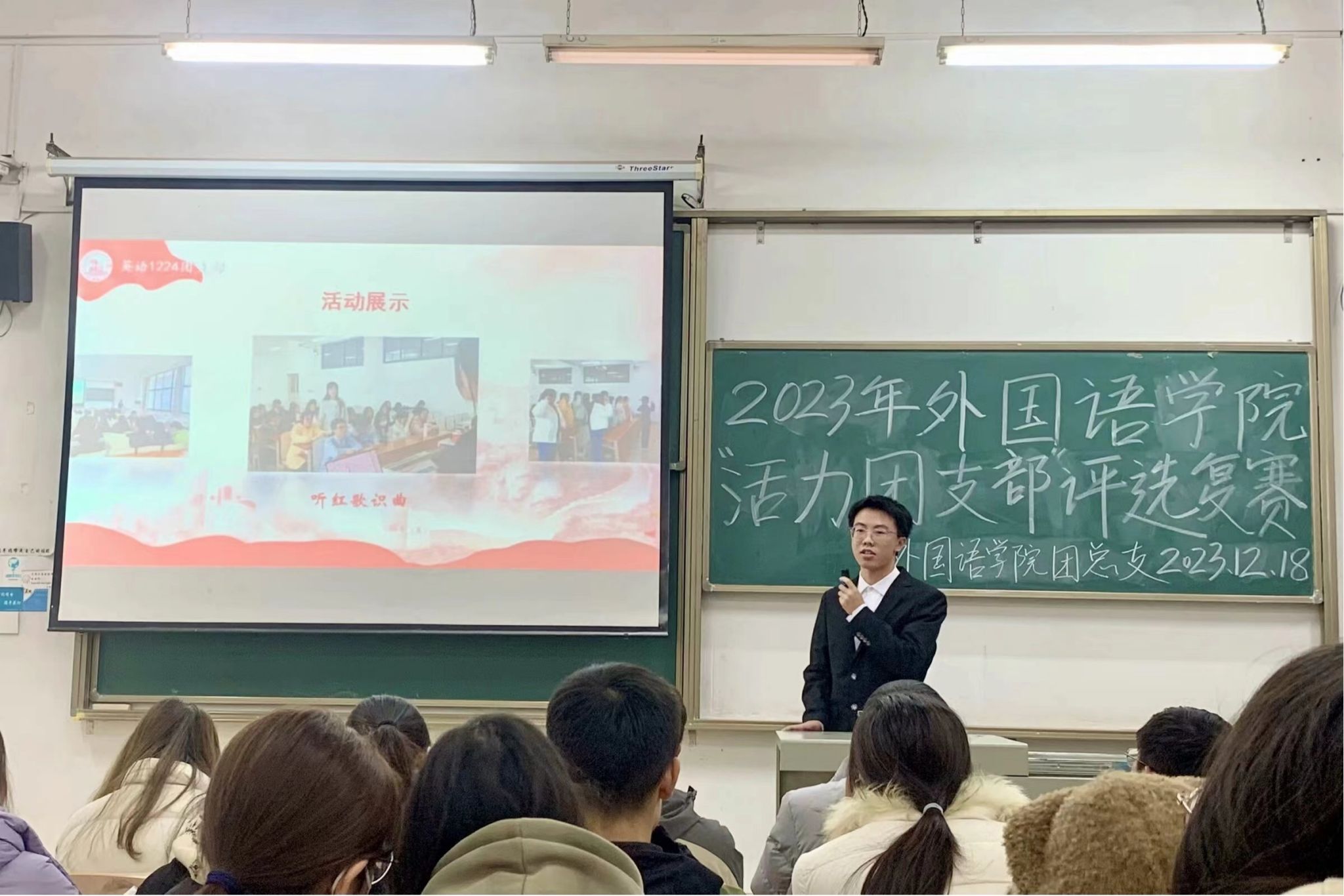 为深入学习贯彻党的二十大精神,教育引导广大团员坚定不移听党话、跟党走,我院2023年“活力团支部”复赛评选活动特于12月18日12时20在2-107成功举办。