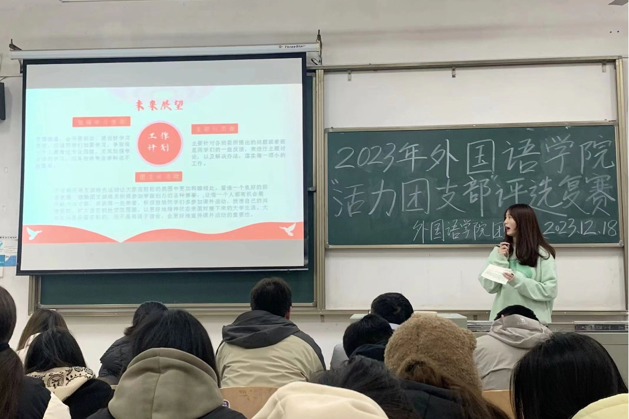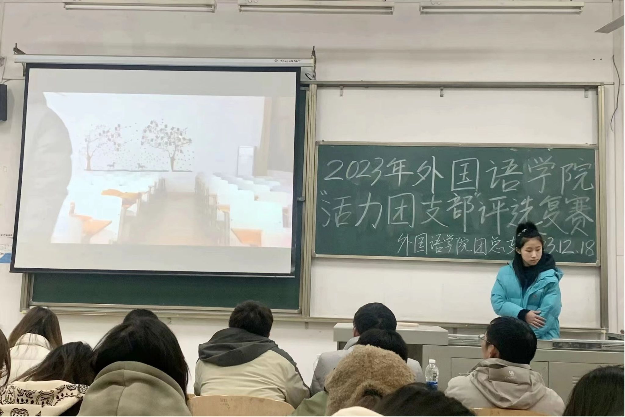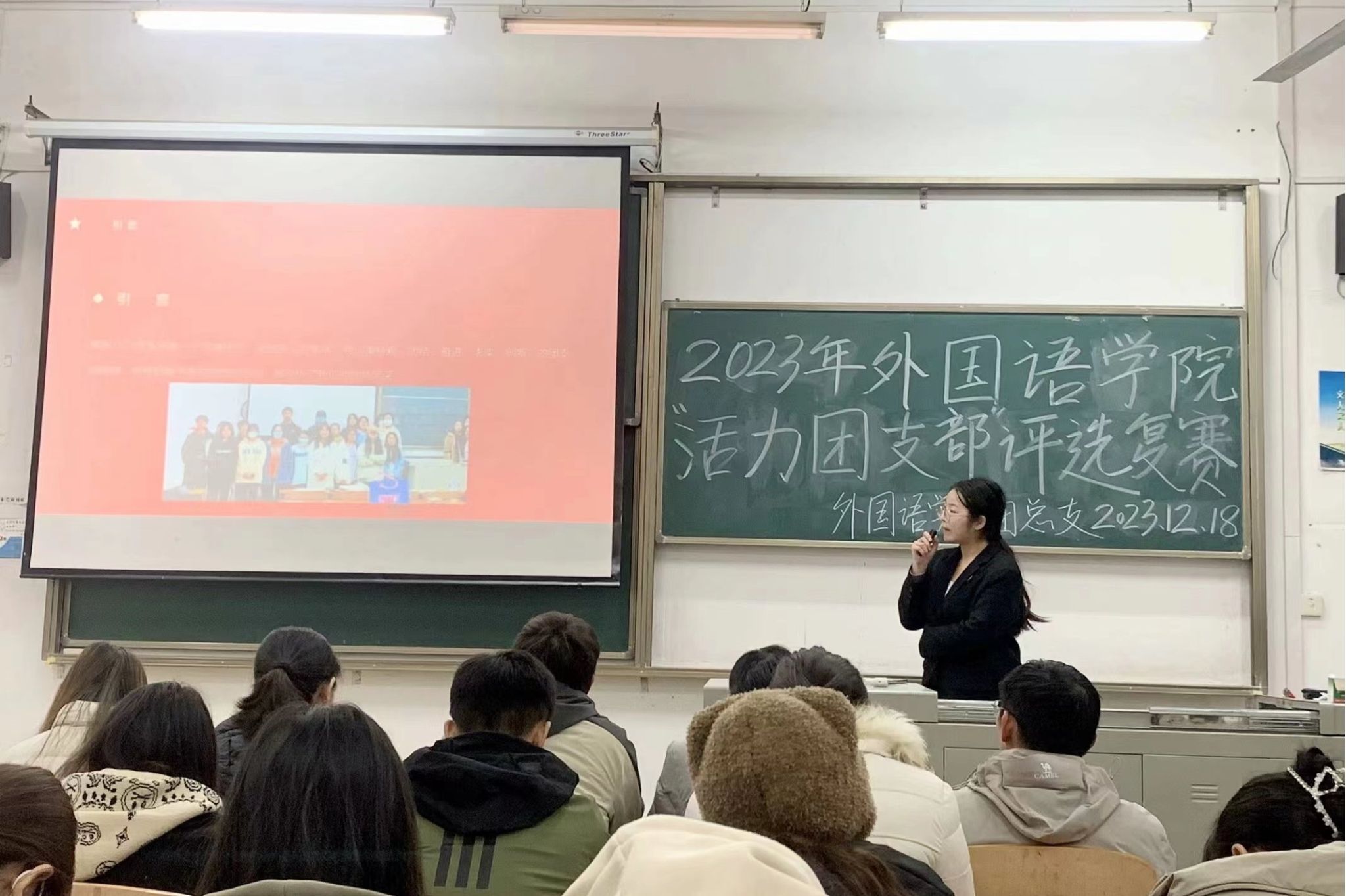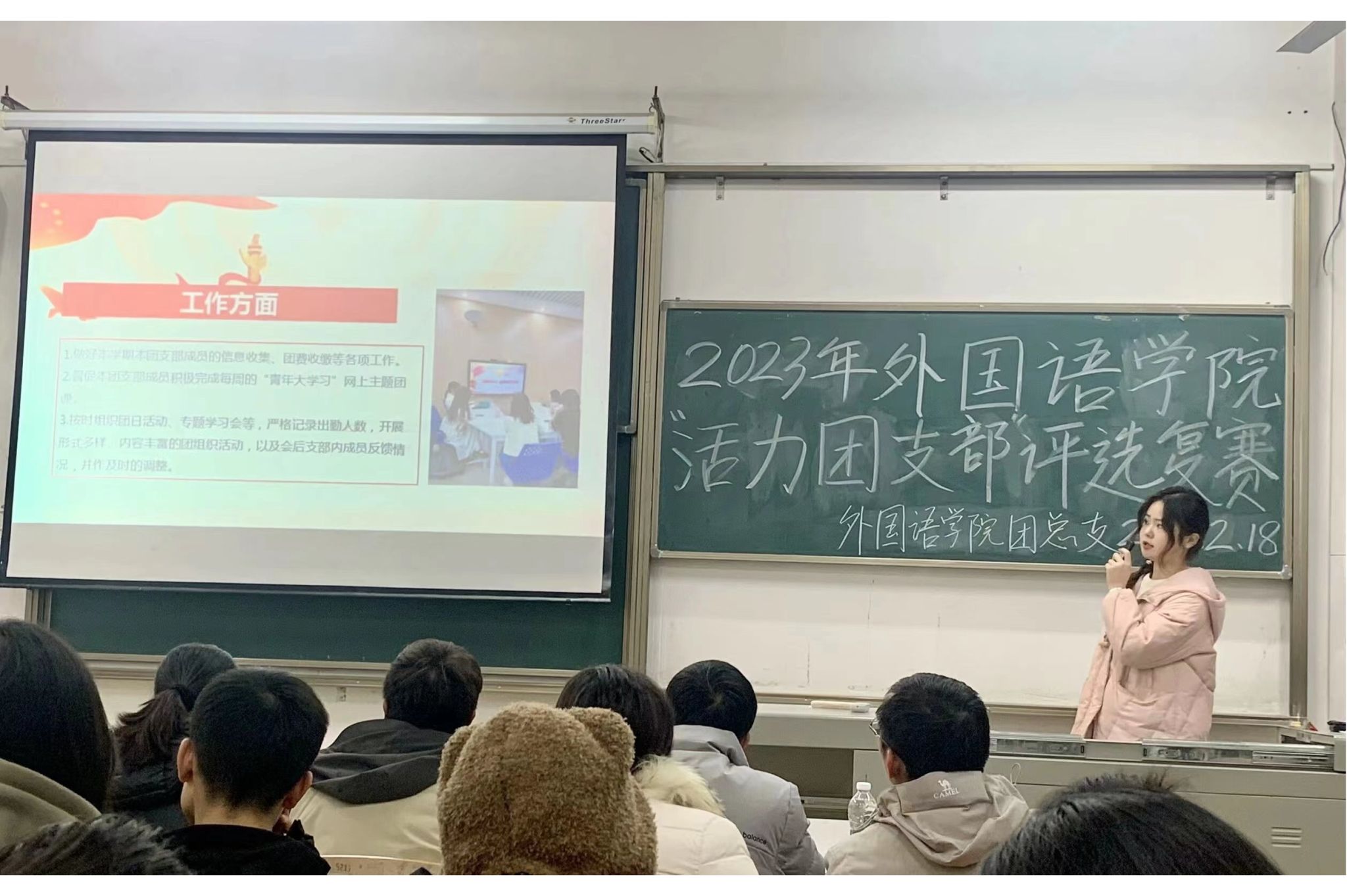 为深入学习贯彻党的二十大精神,教育引导广大团员坚定不移听党话、跟党走,我院2023年“活力团支部”复赛评选活动特于12月18日12时20在2-107成功举办。
