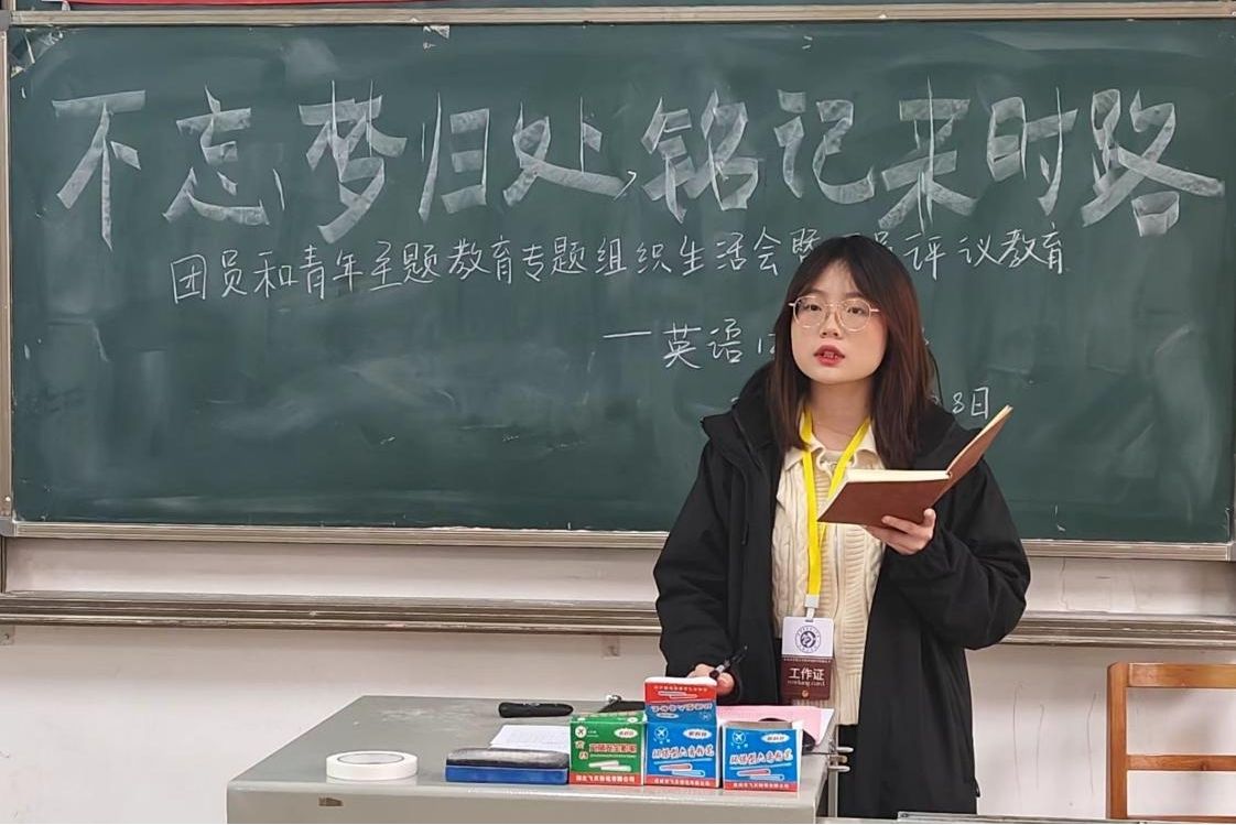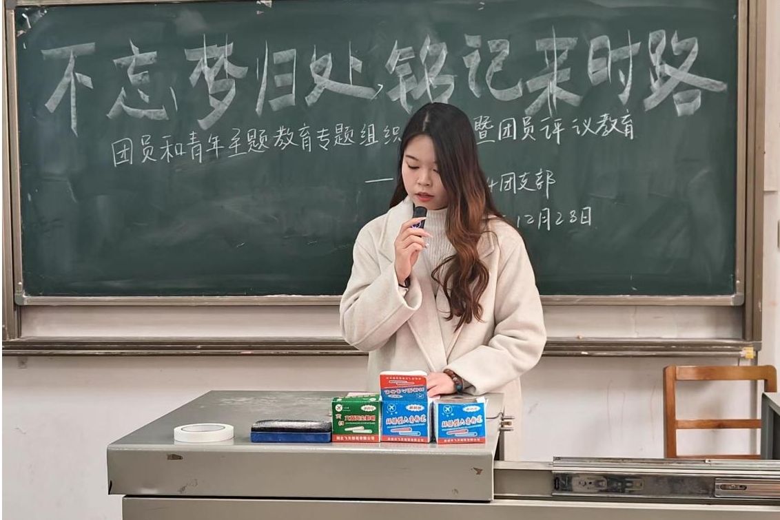 会议第二项,英语1224团支部开展以“不忘梦归处,铭记来时路”为主题的组织生活会,全体成员进行交流借鉴。英语1224团支部书记罗雯雁分别从团员发展要求、团员应履行的义务等内容进行领学。