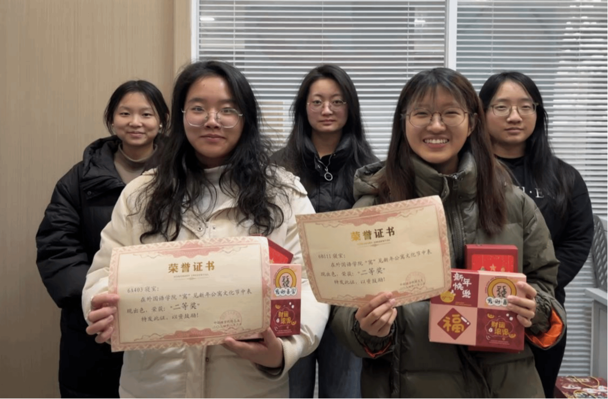 近日,外国语学院学生会举办的“寓”见新年公寓文化节于1月5号在六号楼辅导员社区圆满结束。这场活动旨在增进宿舍成员关系,营造和谐融洽的宿舍环境,形成健康和谐的校园氛围,烘托欢乐祥和的节日气氛。活动自启动以来,得到了广大同学的热烈响应和积极参与。同学们以宿舍为单位记录寝室日常,同时寝室成员根据迎新春主题共同布置寝室,营造新年氛围感。根据活动“寓”见新年主题,外国语学院学生会准备了各有特色的活动奖品。