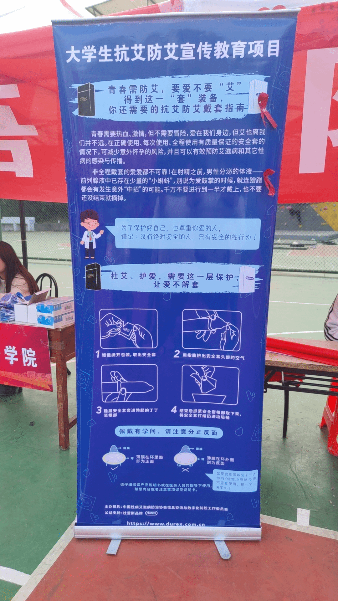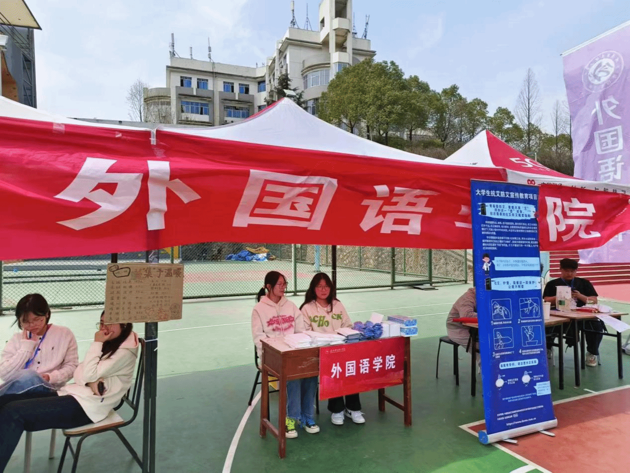 为不断强化预防艾滋病健康教育工作,落实预防艾滋病健康教育宣传工作常态化,进一步提升我院师生预防艾滋病的自我保护意识,3月21日,外国语学院心理健康协会联合校青春同伴社于一食堂门口篮球场进行大学生抗艾防艾宣传教育项目的摆点宣传活动。