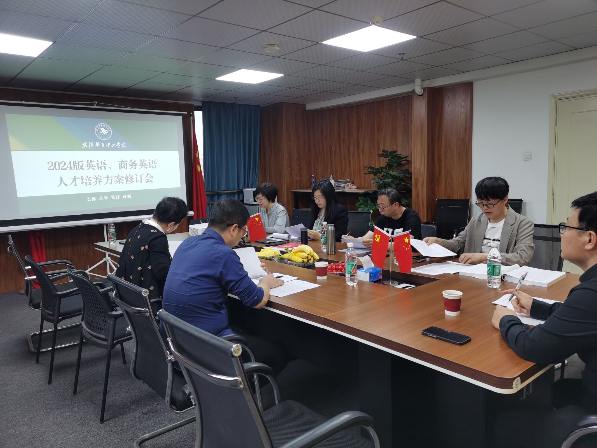 2024年4月1日下午,我院于综合楼1102会议室召开2024版人才培养方案修订会。会议由英语专业系主任杨雯娟、商务英语专业系主任王春艳负责主要阐述修改思路,外国语学院院长刘沛、责任教授王革、国际交流合作部部长肖凤华、外国语学院副院长白燕琴及传神语联网网络科技股份有限公司高校事业部经理张华到场参与评审。