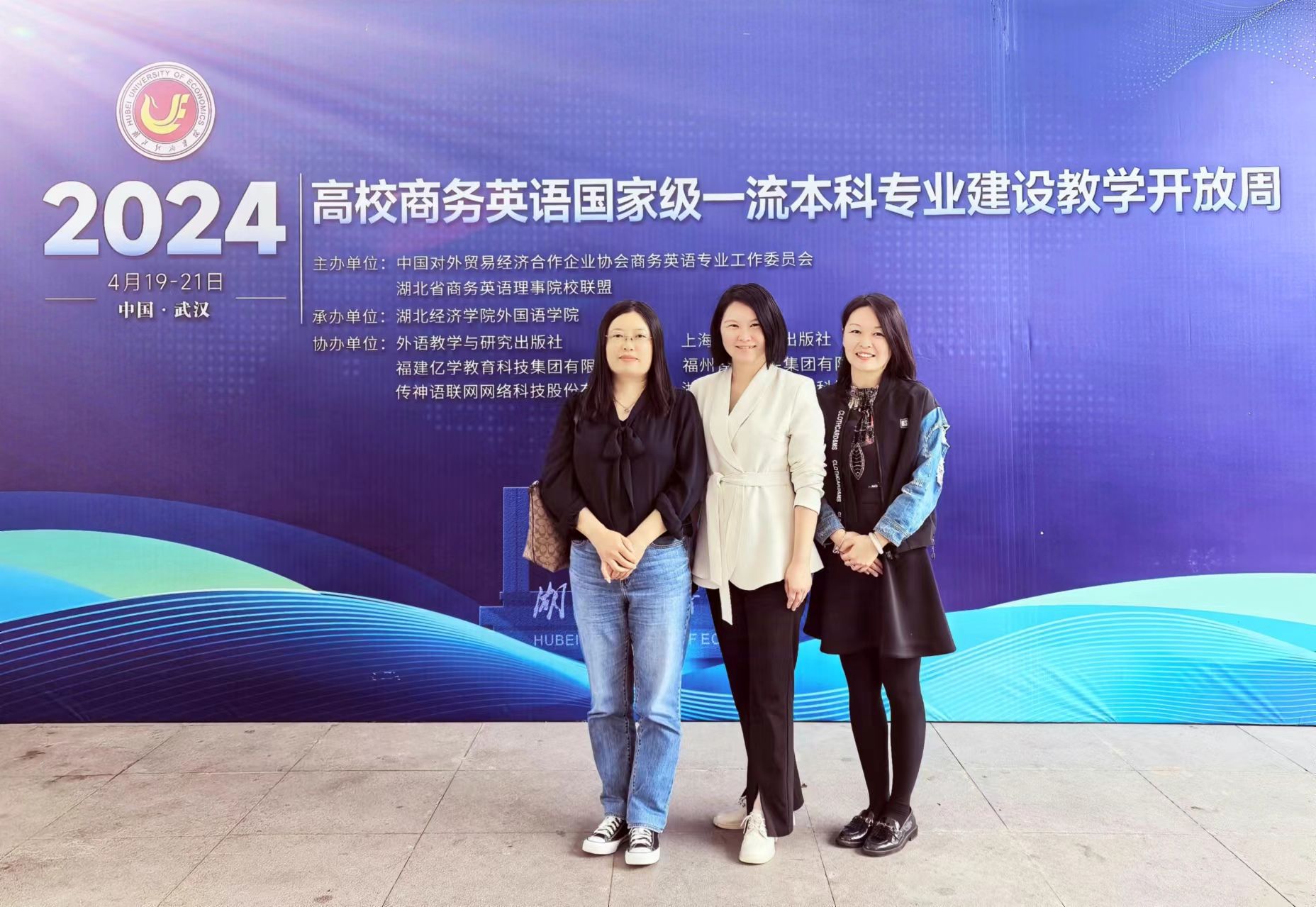 为更好地推进国家一流本科专业建设,研讨商务英语课程建设、课程思政、课堂教学方法、教师发展等专题,助力全国商务英语专业高校教师转变教学理念,改进教学方法,2024年4月19日至20日,全国高校商务英语国家级一流本科专业建设教学开放周在湖北经济学院成功举办。外国语学院商务英语系王春艳、张憭憭和陈晶老师作为教师代表参加了此次会议。