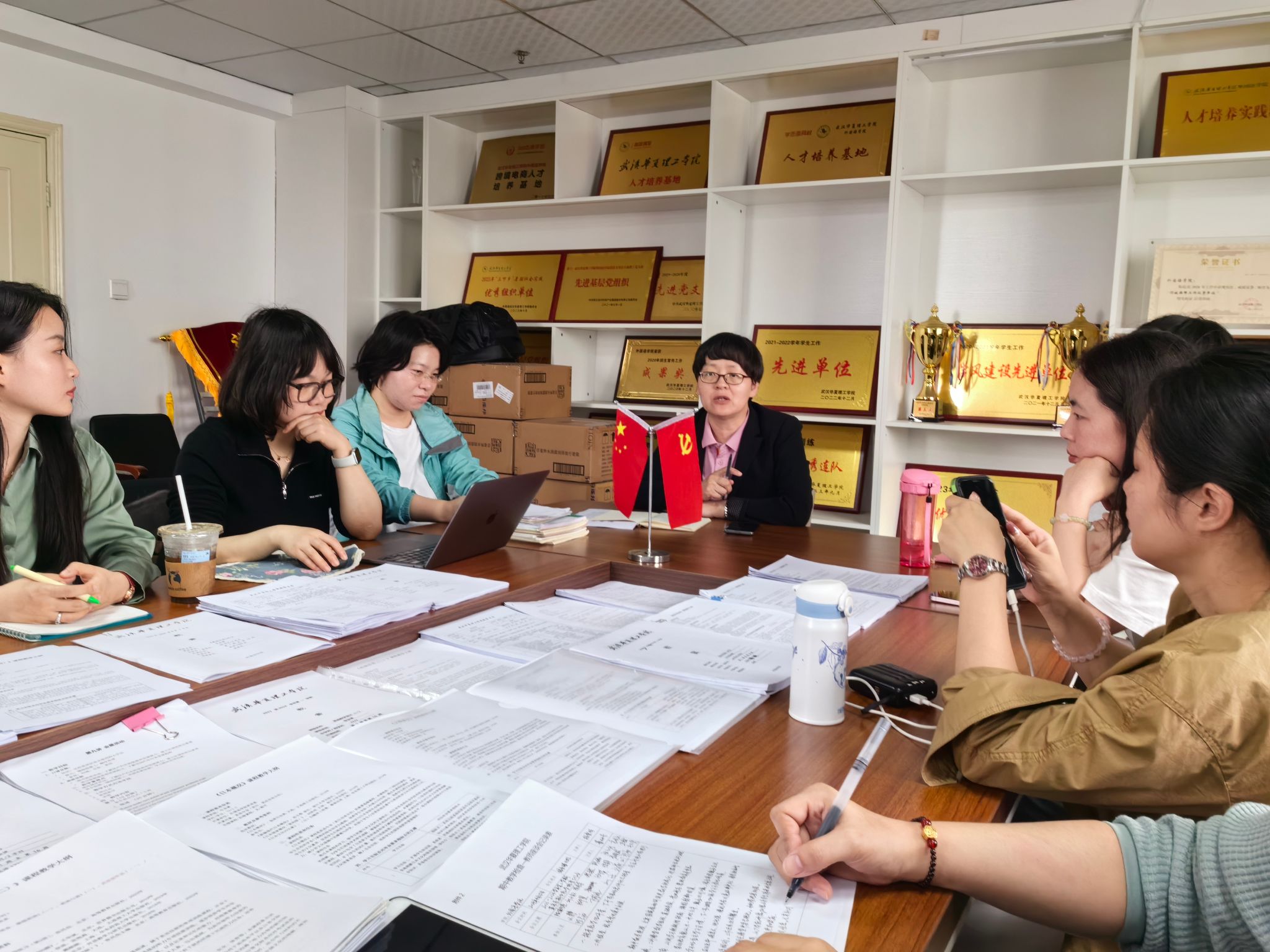 会议首先对英语系全体教师所负责课程的教学材料进行了检查,包括教学大纲、教学日历、教案及PPT等材料。英语系全体教师提交了教学材料,积极配合检查工作。检查标准从严从高,旨在确保教学过程的严谨性和教学内容的高标准。通过检查和比对教学材料,教师们相互学习,共同提高。