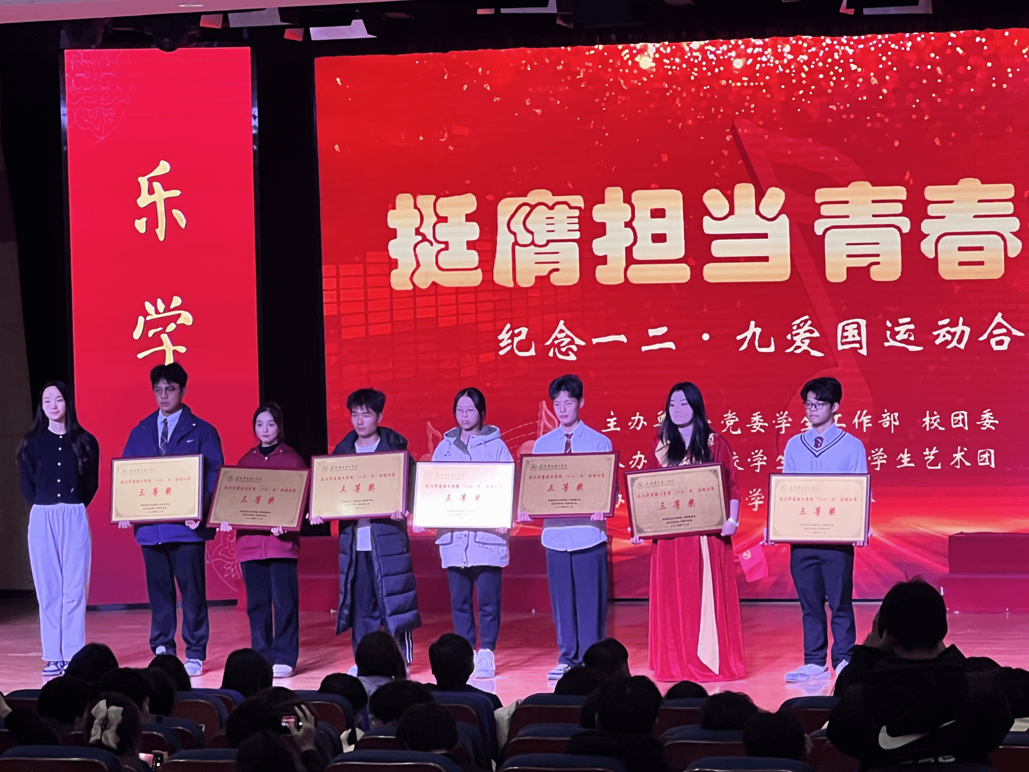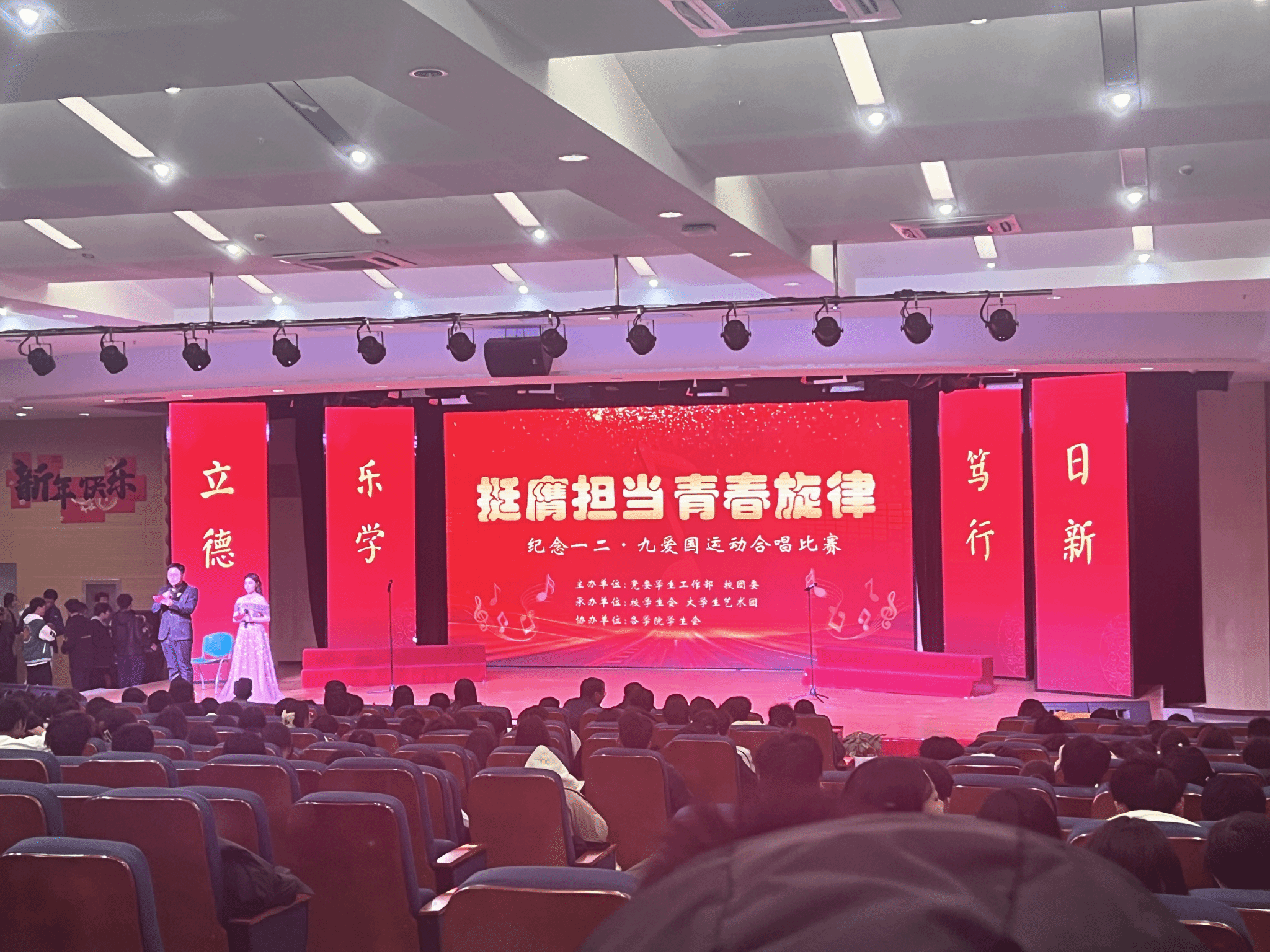 而在历史的长河中,“一二·九”运动如同一座不朽的丰碑,铭刻着青年学生的爱国热忱与英勇无畏。为纪念这一伟大的历史事件,传承和弘扬爱国主义精神,武汉华夏理工学院隆重举行了一二·九合唱比赛。在这场精彩纷呈的赛事中,英语1245 班以其独特的魅力和不懈的努力,赢得了全场的瞩目与尊重,最终荣获三等奖。