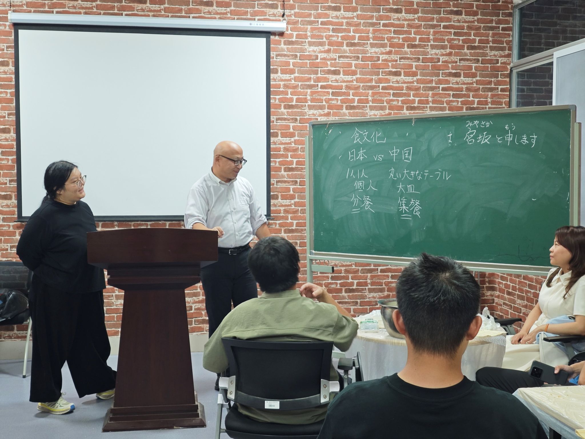 寿司制作完成后,外教宫坂先生(老师)结合自身经历,生动讲解了中日饮食文化的差异。从食材选择的偏好到餐桌礼仪的细节,从节庆美食的寓意到饮食理念的内核,宫坂先生的分享让同学们对两国文化有了更直观、深入的理解。