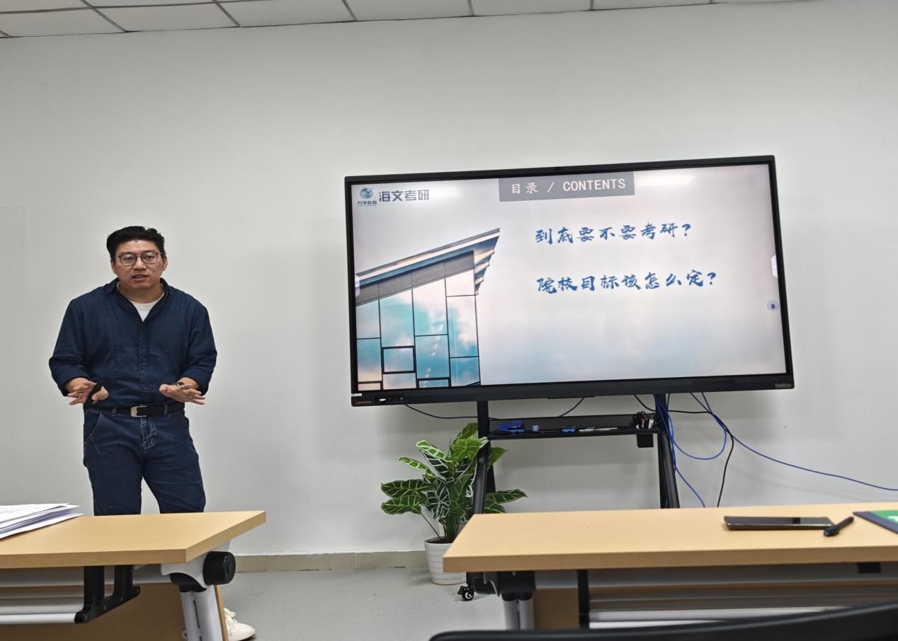 接下来,董雨辰老师就考研形势进行了专业分析。董老师从报考政策、院校选择、备考策略等方面展开讲解,为在场学生提供了具有参考价值的建议。他详细解读了近年考研政策的变化趋势,并针对不同专业的学生提出了具体的备考建议。董老师建议学生要合自身情况,制定个性化的复习计划。两位老师的讲解内容详实,数据准确,为准备考研的学生提供了清晰的指导方向。