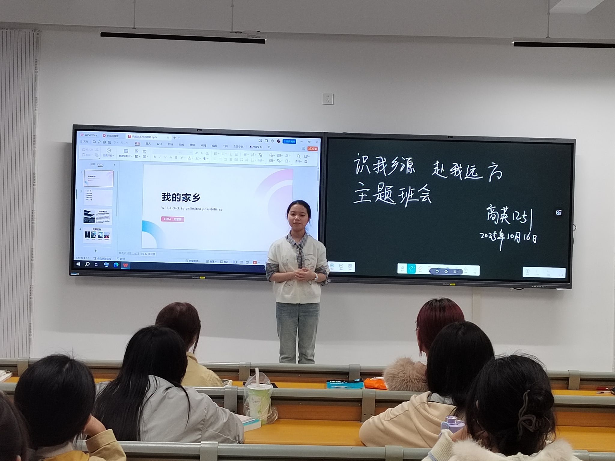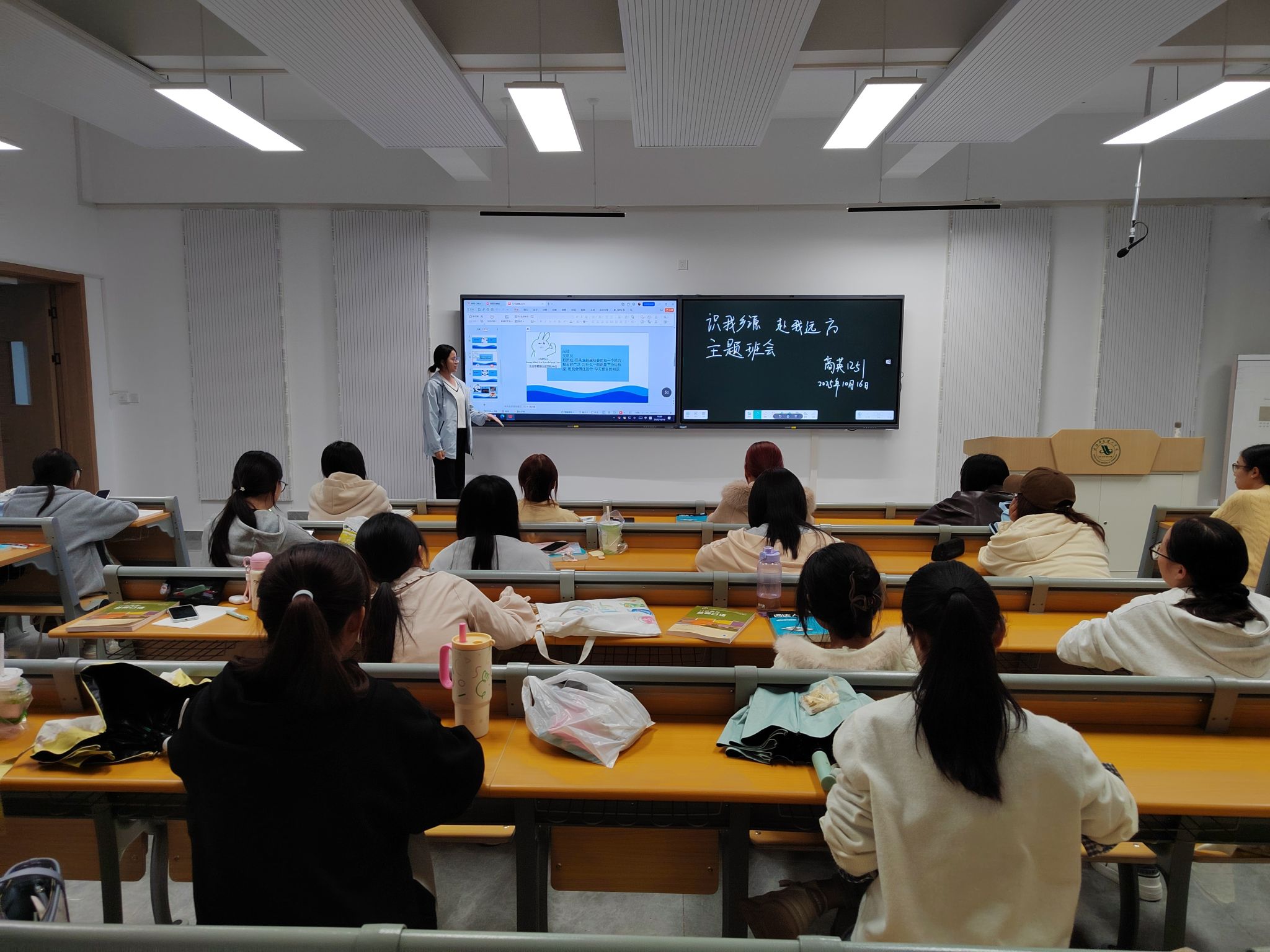 2025年10月16 日 18:30 商英1251班开展主题班会:识我乡源,赴我远方。以自我介绍的方式围绕主题家乡来进行讲解。有条不紊的展示我是谁,从哪里来,去往哪里。本次班会由班长张艺主持,全体同学共同参与。