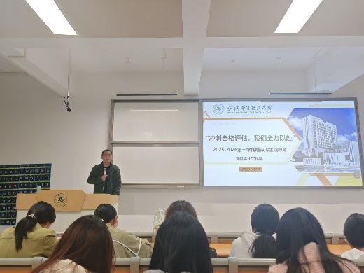 10月19日18:00,武汉华夏理工学院外国语学院 25级新生在 B219 教室由龚飞辅导员主持开展"冲刺合格评估,我们全力以赴"主题晚点评。