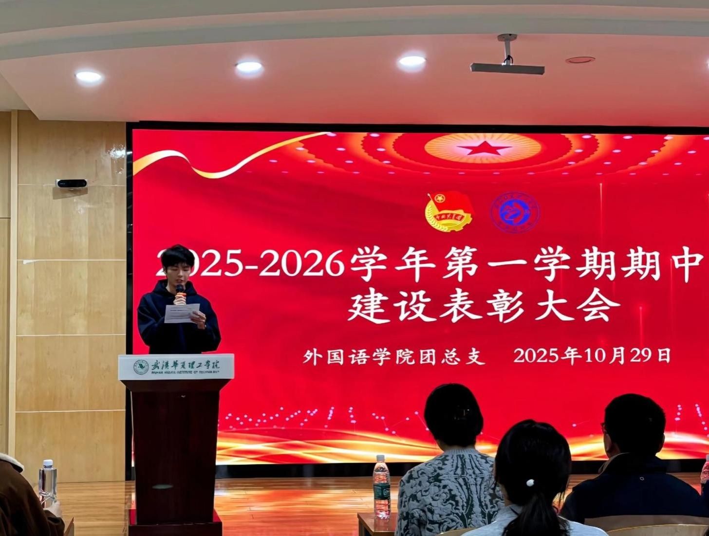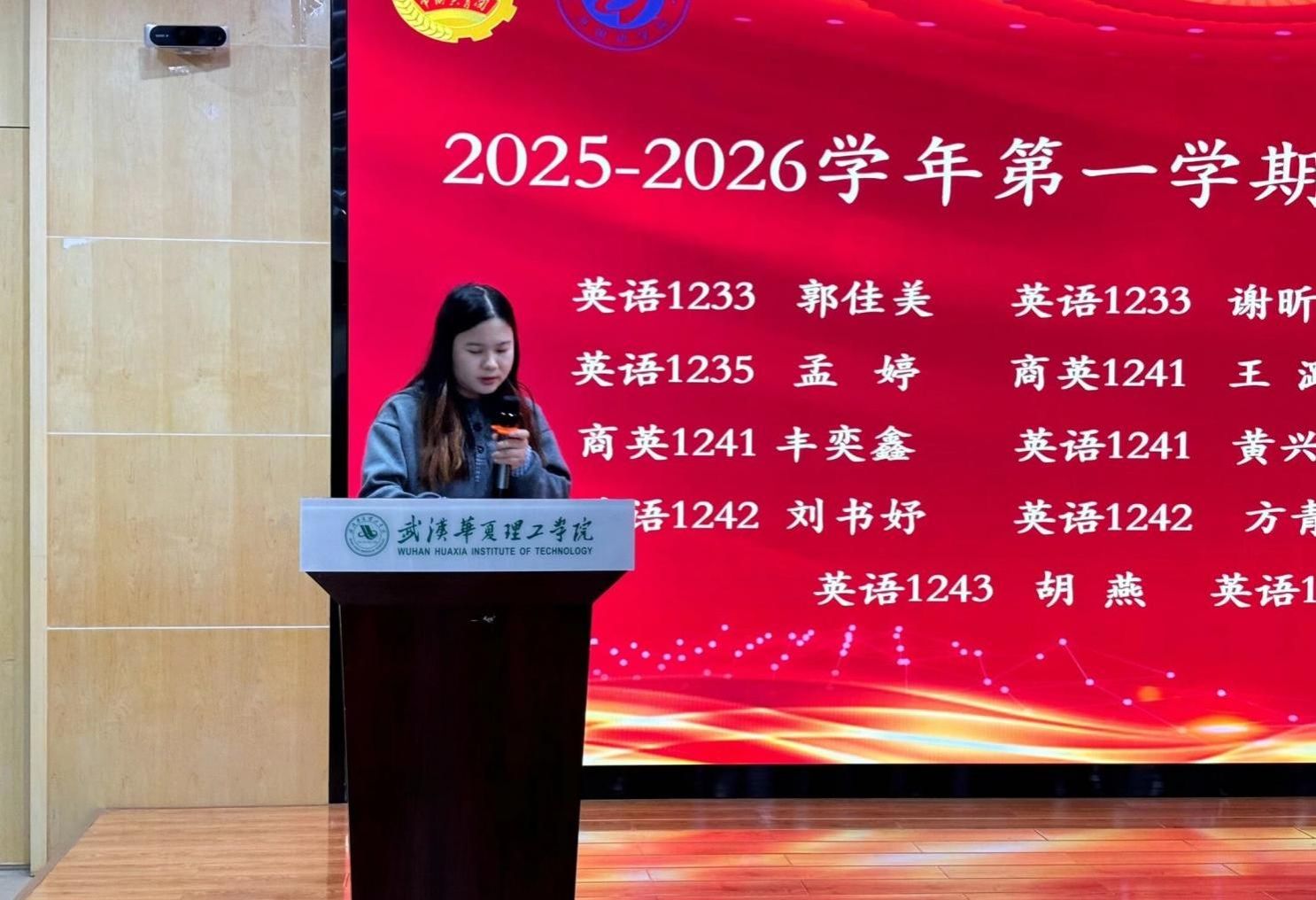 为持续优化校园育人环境,营造积极向上、协同共进的校园氛围,我院近期展开了以“正校风、优教风、强室风”为主题的学风建设系列活动,并取得了卓越成绩。我院于10月29日12时20分在武汉校区教学楼2-201举行外国语学院2025-2026学年第一学期期中学风建设表彰大会,外国语学院党总支副书记马勇老师,党总支组织员兼学工办主任陈卓老师,团总支书记兼24级辅导员王欣佳老师,团总支副书记兼23级辅导员张补峰老师,22级辅导员郭晨艳老师参加会议。
