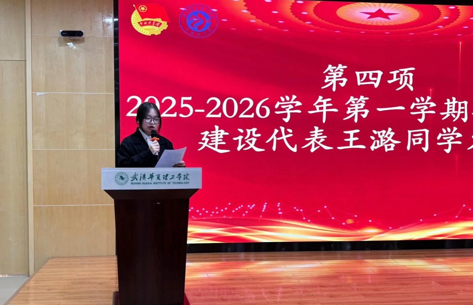 会议接近尾声,2025-2026学年第一学期期中学风建设代表王潞同学进行发言,作为学生干部,王潞同学从自身工作视角出发,详细介绍了学生干部群体在学院 学风建设中所作出的努力,包括主动组织学习经验分享会、协助老师开展班级纪律管理、牵头策划寝室文化建设讨论等具体行动,让在场师生更直观地了解到学生干部在学风建设中的积极作为。