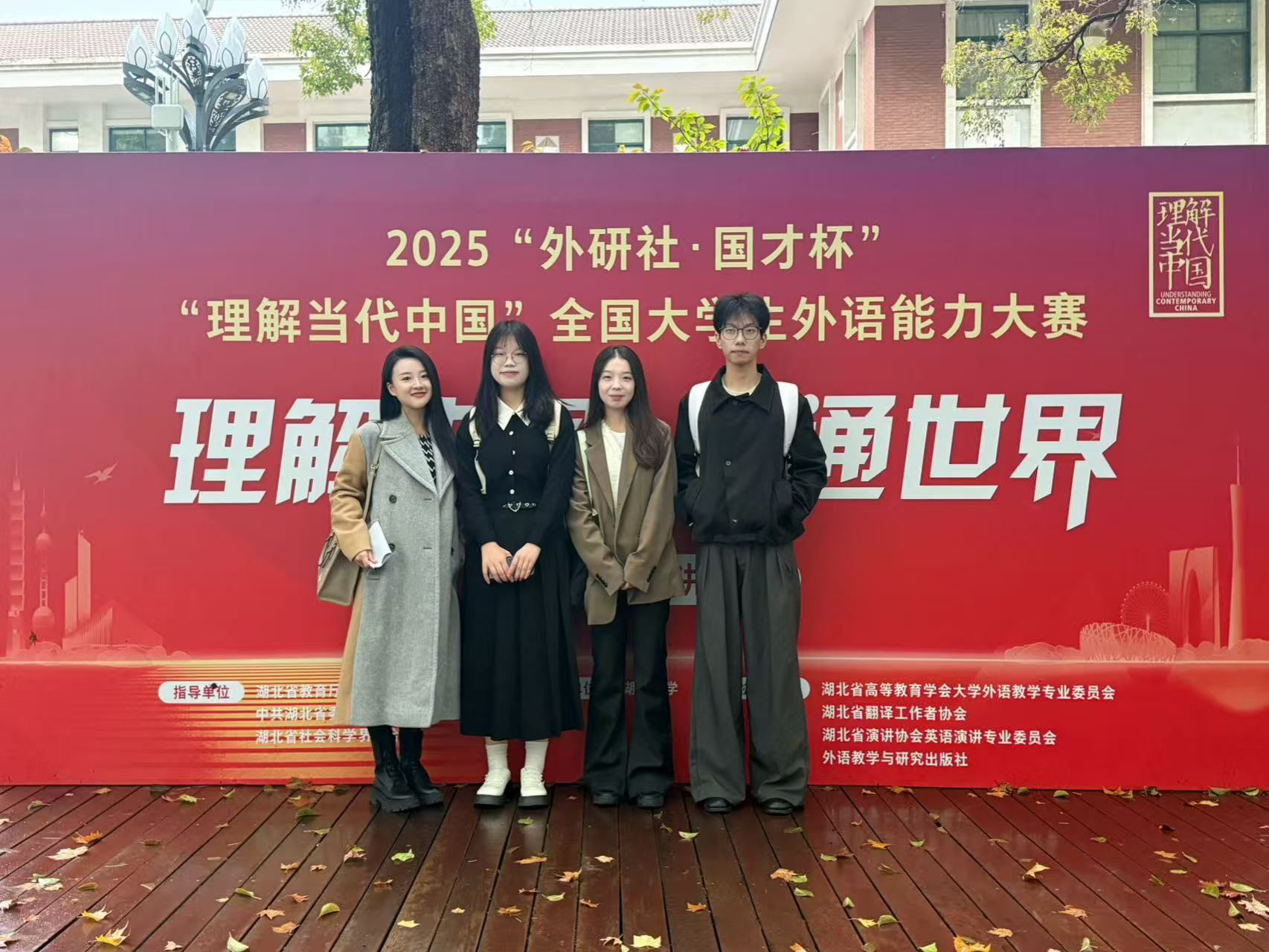 为积极响应赛事号召,我校自 2025 年 9 月起便启动校内选拔工作:先通过学院初赛筛选出10名潜力选手,再围绕即兴演讲技巧、中国故事素材积累、跨文化表达逻辑等内容开展系统备赛指导。经过层层遴选与充分准备,最终确定商英1241班杨心怡、英法1231班叶蓦然、英语1223班周程程三位同学代表学校出征。比赛期间,三位选手严格遵守赛事规程——提前抵达湖北大学西北门签到、按要求提交身份证与诚信承诺书、在候赛室主动上交通讯设备,全程展现出良好的纪律意识;进入即兴演讲环节后,他们更凭借扎实的英语语言功底,将“乡村振兴”“文化传承”“青年责任”等时代主题与自身观察相结合,以清晰的逻辑架构、深刻的主题阐释与从容的现场表现,赢得评委的一致认可,最终在激烈角逐中全部脱颖而出,三位选手均获得优胜奖,为学校赢得团体荣誉的同时,也让华夏学子的风采在省级赛场得以充分展现,进一步彰显了我校外语教学“以实践育人为核心、以家国情怀为底色”的育人成效。