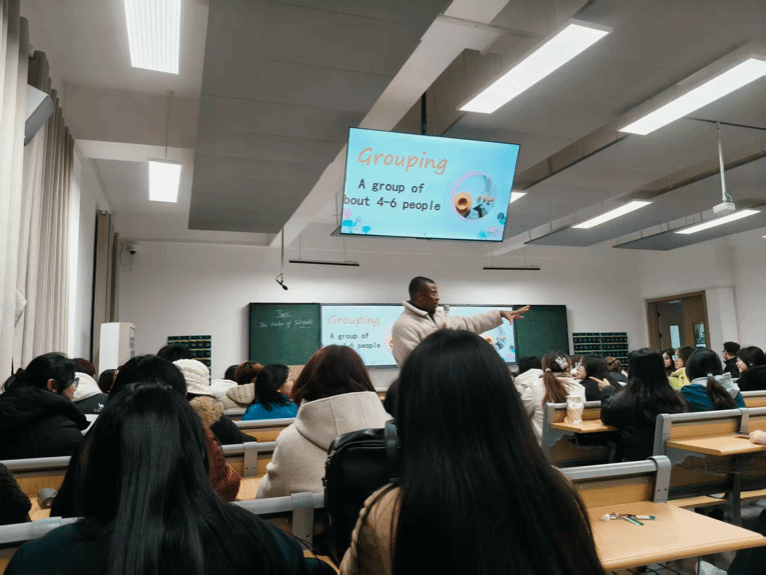 活动伊始,外教首先通过“破冰游戏”营造了轻松愉快的全英交流氛围。“两个真相,一个谎言”环节中,每位参与者用英语分享三个关于自己的陈述,其他小组成员则通过提问与观察来猜测虚假陈述。这一设计不仅迅速拉近了彼此的距离,也有效锻炼了大家的英语听力和口语表达能力。