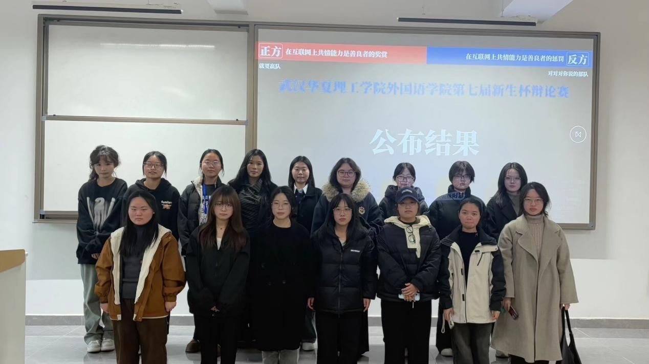 为提升大学生的逻辑思辨与语言组织能力,11月22日14:30,由我院学生会与院辩论队联合组织的“新时代·新声音”2025级新生杯辩论赛决赛在梧桐湖校区教学楼B219顺利举行。本次比赛由外国语学院辩论队的诸位队长与队员共同担任评委。