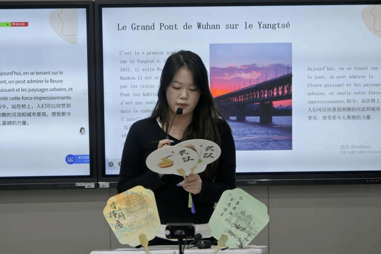 12月5日晚,我院法语学生与法国留尼汪孔子学院学生和部分华夏文旅工作室成员顺利参与“扇开江城樱,漆染火山霞”线上文化交流活动。本次活动由华夏文旅工作室徐静老师、马克思主义学院程权明老师及法国留尼汪孔子学院公丽霞老师联合指导,活动以趣味互动搭建跨洋沟通桥梁,既让留尼汪学子领略武汉魅力,也帮助我校法语学生增进对留尼汪的认知,为两国青年文化交流注入青春活力。